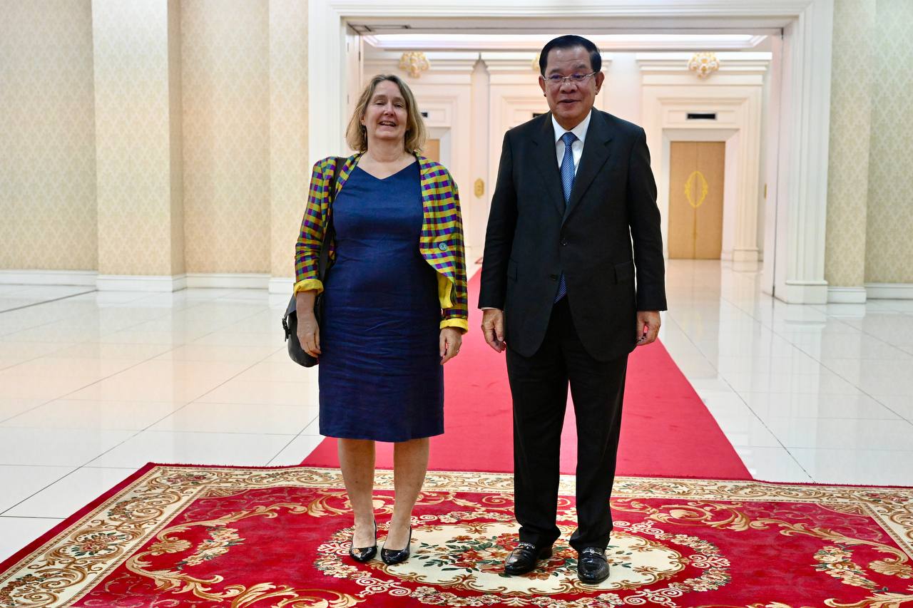 ភ្នំពេញ៖ នៅរសៀលថ្ងៃទី២២ ខែសីហា ឆ្នាំ២០២២នេះ សម្តេចអគ្គមហាសេនាបតីតេជោតេជោ ហ៊ុន សែន នាយករដ្ឋមន្ត្រីព្រះរាជាណាចក្រកម្ពុជា បានទទួលជួបពិភាក្សាការងារ ជាមួយលោកជំទាវ ធីណា រ៉េដស ឯកអគ្គរដ្ឋទូតអង់គ្លេសប្រចាំនៅកម្ពុជា ក្នុងឱកាសដែលលោកជំទាវបានចប់អាណត្តិការទូតនៅកម្ពុជា។