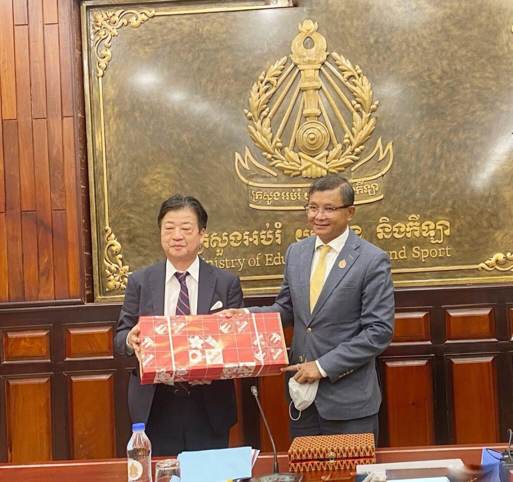 ភ្នំពេញ៖ ឯកឧត្តមបណ្ឌិតសភាចារ្យ ហង់ជួន ណារ៉ុន រដ្ឋមន្ត្រីក្រសួងអប់រំ យុវជន និងកីឡា បានអនុញ្ញាតឱ្យតំណាងអង្គការ NPO Kyousei Forum ជួបសម្តែងការគួរសម និងពិភាក្សាការងារ ដោយផ្តោតលើវិស័យអប់រំកាលពីថ្ងៃទី២២ ខែ សីហា ឆ្នាំ២០២២នៅទីស្តីការក្រសួងអប់រំយុវជននិងកីឡា ។