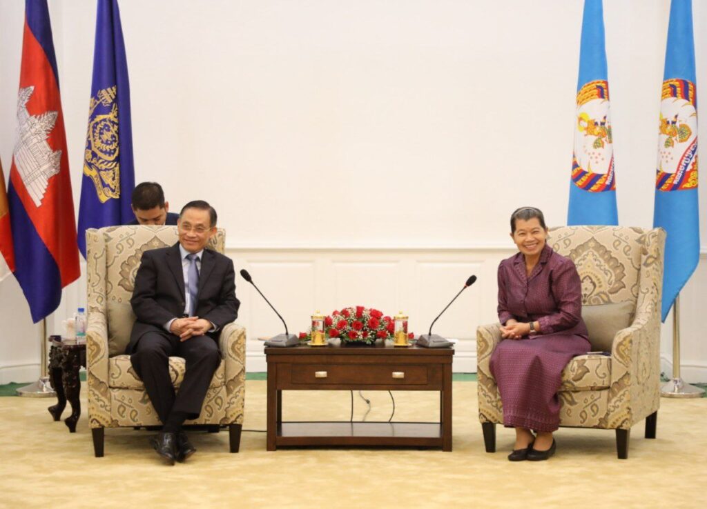 ភ្នំពេញ ៖ លោកជំទាវកិត្តិសង្គហបណ្ឌិត ម៉ែន សំអន អនុប្រធានគណបក្សប្រជាជនកម្ពុជា បានអនុញ្ញាតឱ្យ ឯកឧត្តម ឡេ ហាយជុង សមាជិកគណៈកម្មាធិការមជ្ឈិមបក្ស និងជាប្រធានគណៈទាក់ទងបរទេស នៃគណៈកម្មាធិការមជ្ឈិមបក្សកុម្មុយនីស្តវៀតណាម ចូលជួបសម្តែងការគួរសម និងពិភាក្សាការងារ នៅវិមាន៧មករា នាព្រឹកថ្ងៃអង្គារ ១១រោច ខែស្រាពណ៍ ឆ្នាំខាល ចត្វាស័ក ព.ស.២៥៦៦ ត្រូវនឹង ថ្ងៃទី២៣ ខែសីហា ឆ្នាំ២០២២ ។