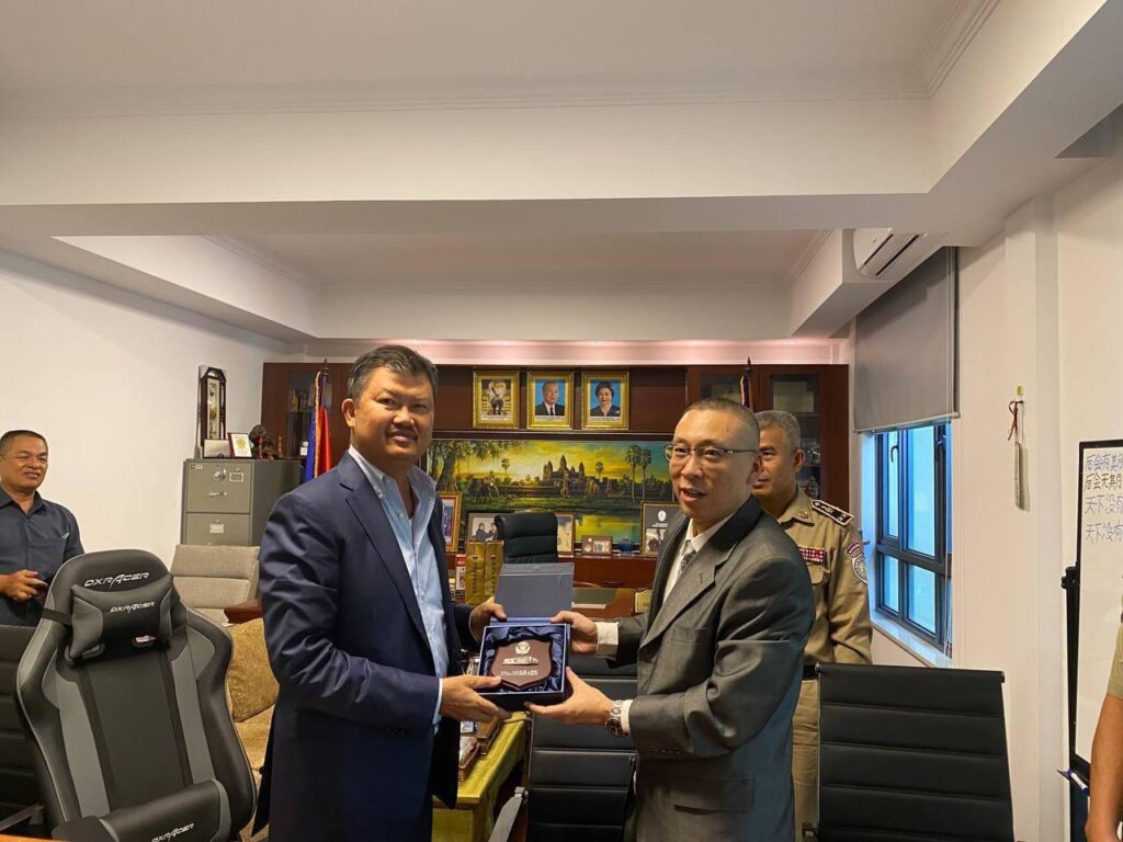 ប្រធានគណៈកម្មាធិការប្រយុទ្ធប្រឆាំងផលិតផលក្លែងក្លាយ ជួបពិភាក្សាការងារជាមួយប្រតិភូទីប្រឹក្សាទំនាក់ទំនងកិច្ចការនគរបាល នៃស្ថានទូតចិនប្រចាំនៅកម្ពុជា