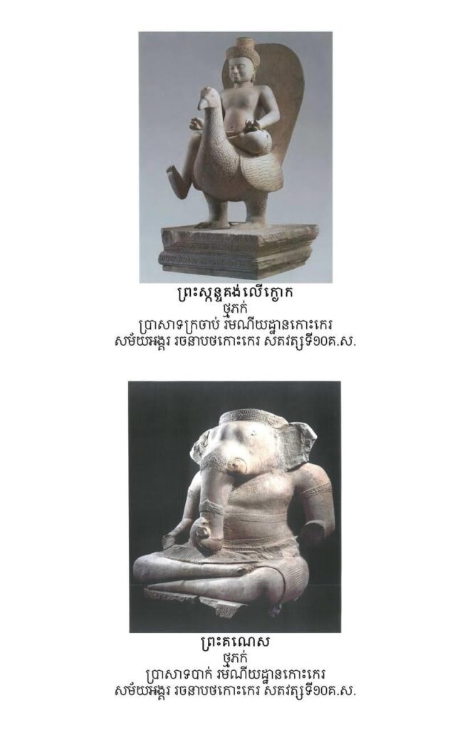 បច្ចុប្បន្ន កម្ពុជាកំពុងធ្វើយុទ្ធនាការសកល ដើម្បីស្វែងរកមកវិញនូវរតនសម្បត្តិជាតិរបស់ខ្លួន នាពេលថ្មីៗនេះ ដែលព្រះរាជាណាចក្រកម្ពុជាទទួលបានមកវិញនូវស្នាដៃឯកចំនួន ៣០រូប ក្នុងនោះមានរូបចម្លាក់ «ព្រះគណេស» និង «ព្រះស្កន្ទគង់លើសត្វក្ងោក» តាមរយៈកិច្ចសហប្រតិបត្តិការទ្វេភាគីជាមួយសហរដ្ឋអាមេរិក គឺជាជោគជ័យដ៏ធំធេង។ ស្នាដៃចម្លាក់ដ៏ល្អឯកទាំងពីរនេះ មានប្រភពមកពីតំបន់ប្រាសាទកោះកេរ ដែលជារាជធានីនៃអាណាចក្រខ្មែរបុរាណក្នុងសតវត្សរ៍ទី១០ នៃគ.ស។ អ្នកចូលរួមទាំងអស់ នឹងបានទៅទស្សនាប្រាសាទកោះកេរ នៅក្នុងដំណើរទស្សនកិច្ចនៃកម្មវិធីសន្និសីទនេះ ហើយនឹងឃើញដោយផ្ទាល់នូវផលប៉ះពាល់ធ្ងន់ធ្ងរនៃការធ្វើពាណិជ្ជកម្មខុសច្បាប់ ចំពោះតំបន់បេតិកភណ្ឌវប្បធម៌។
