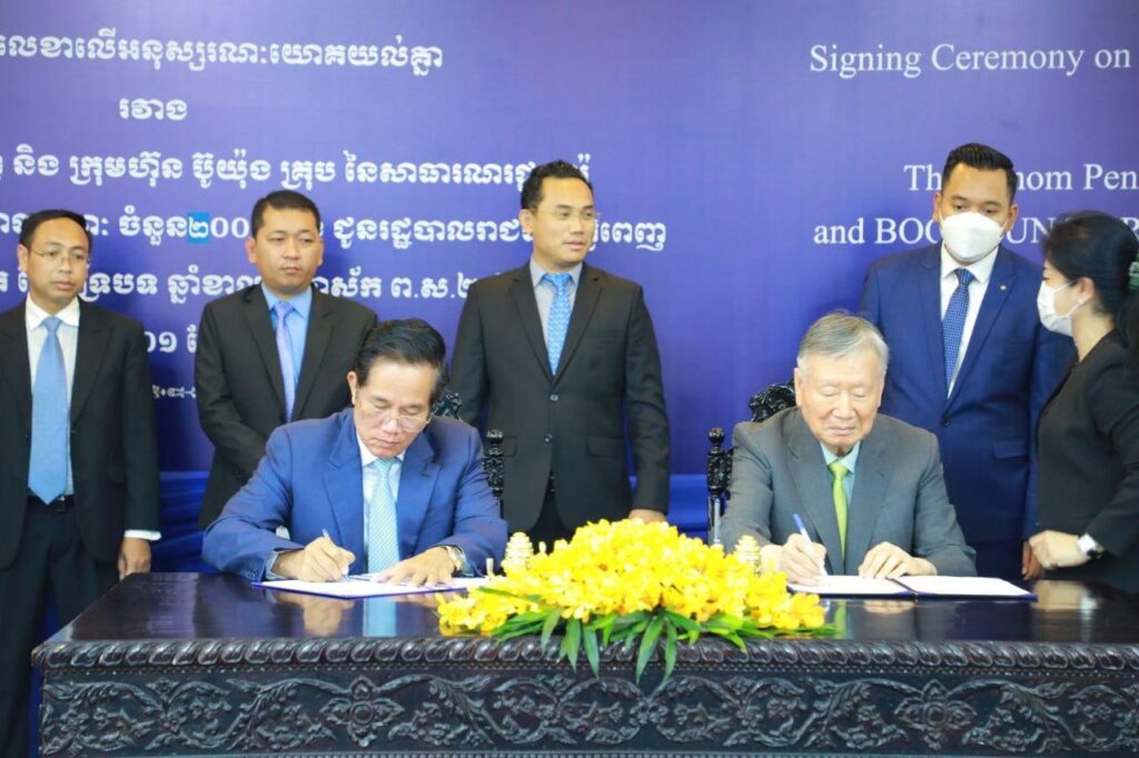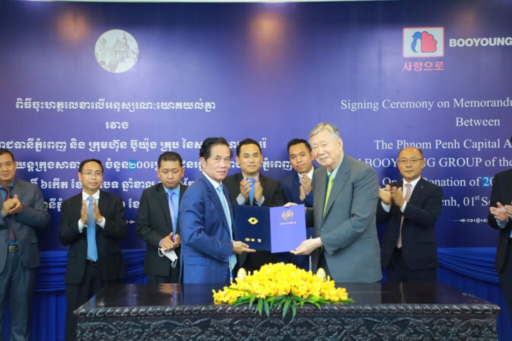 ភ្នំពេញ៖ក្រុមហ៊ុនរបស់ប្រទេសកូរ៉េ បានផ្ដល់រថយន្ដក្រុងសាធារណៈថ្មី២០០គ្រឿង ដើម្បីលើកកម្ពស់កំណើនសេដ្ឋកិច្ចប្រជាពលរដ្ឋ និងចូលរួមកាត់បន្ថយការកក់ស្ទះចរាចរណ៍។ ពិធីចុះអនុស្សរណៈយោគយល់គ្នា (MoU) នៃការប្រគល់រថយន្ដក្រុងចំនួន២០០គ្រឿង ដល់សាលារាជធានីភ្នំពេញ ក្រោមអធិបតីភាពឯកឧត្តម ឃួង ស្រេង អភិបាលរាជធានីភ្នំពេញ និងលោកបណ្ឌិត LEE JOONG KEUN ប្រធានក្រុមប្រឹក្សាភិបាល ក្រុមហ៊ុន ប៊ូយ៉ុង គ្រុប (BOOYOUNG GROUP) បានធ្វើឡើងកាលពីថ្ងៃទី០១ ខែកញ្ញា ឆ្នាំ២០២២កន្លងទៅ។