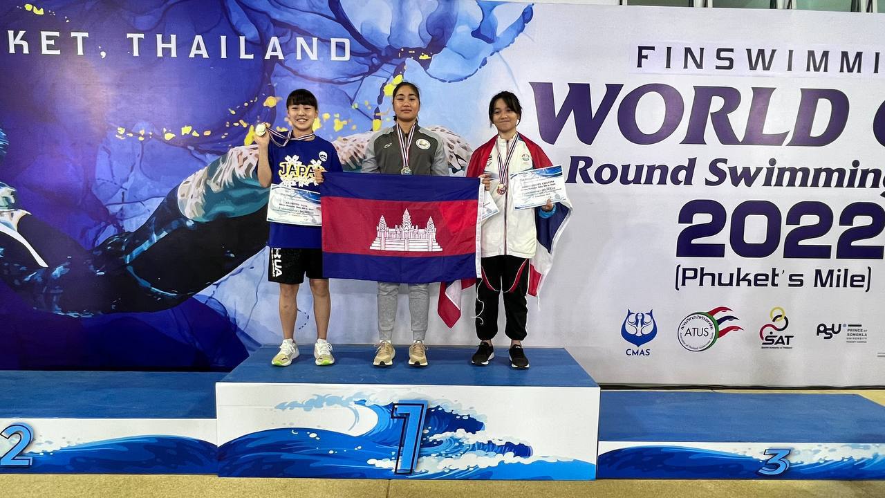 អបអរសាទរកីឡាការិនី កាំង មុយនីន ទទួលបានជ័យលាភីមេដាយ ២គ្រឿង មាស ១គ្រឿង លើប្រភេទវិញ្ញាសា Women 400m Bifins និងសំរឹទ្ធ ១គ្រឿង លើប្រភេទ វិញ្ញាសា Women 50m Bifins ក្នុង ការប្រកួត Finswimming’s World Cup Round Swimming Pool 2022 នៅព្រះរាជាណាចក្រថៃ។