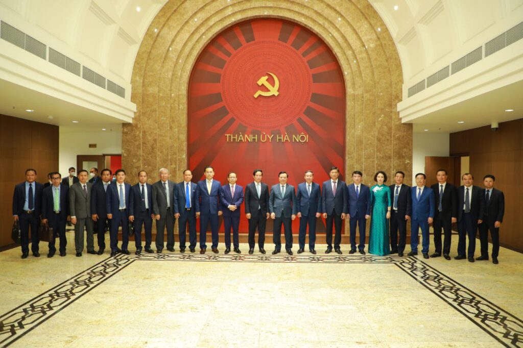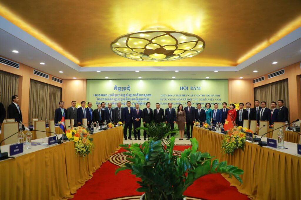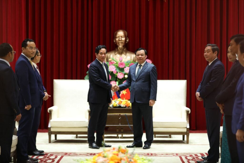 ហាណូយ ៖ ឯកឧត្តម ឃួង ស្រេង សមាជិកគណៈកម្មាធិការកណ្តាល និងជាប្រធានគណៈ កម្មាធិការគណបក្សប្រជាជនកម្ពុជារាជធានីភ្នំពេញ រួមនឹងគណៈប្រតិភូបានចូលជួបសំដែងការគួរសមចំពោះ ឯ.ឧឌិញ ទៀនហ្សុង សមាជិកគណៈកម្មាធិការកណ្តាល អនុប្រធានគណៈកម្មាធិការបក្សទីក្រុងហាណូយ នៃសាធារណៈរដ្ឋសង្គមនិយមវៀតណាម នារសៀលថ្ងៃទី៦កញ្ញាដើម្បីរិតចំណងមិត្តភាព សាមគ្គី ភាពនិងកិច្ចសហប្រតិបត្តិការរវាងទីក្រុងទាំង២ភ្នំពេញ.ហាណូយដែលជាទីក្រុង សម្ពន្ធ័ភាពនឹងគ្នា។