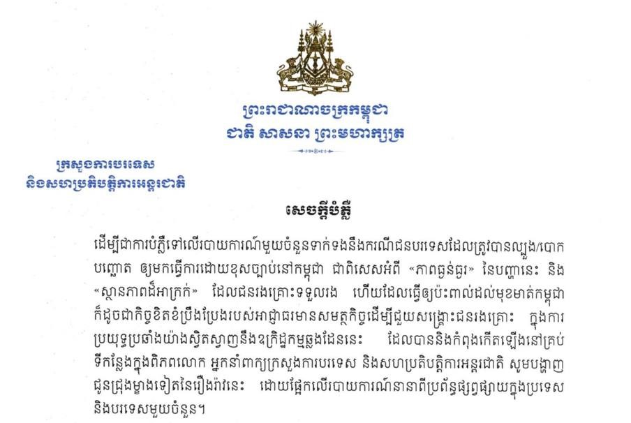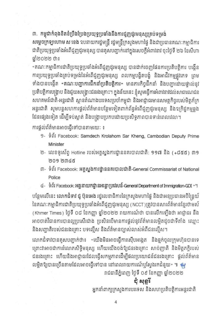 សេចក្តីបំភ្លឺ ទាក់ទងនឹងករណីជនបរទេសដែលត្រូវបានល្បួង/បោកបញ្ឆោត ឱ្យមកធ្វើការដោយខុសច្បាប់នៅកម្ពុជាOne-Minuteអត្ថបទដោយ៖AMS OneMinute AMS OneMinuteអត្ថបទមុនអត្ថបទបន្ទាប់