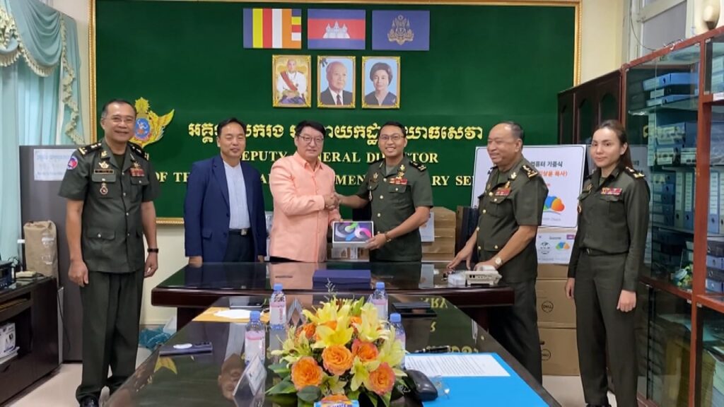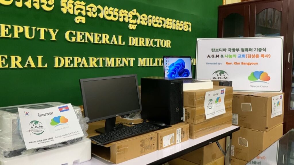 អគ្គនាយកដ្ឋានយោធសេវា ក្រសួងការពារជាតិ ទទួលកុំព្យូទ័រពីអង្គការ អេជីអឹម កូរ៉េ សម្រាប់បម្រើនៅក្នុងសាលាបណ្តុះបណ្តាលវិជ្ជាជីវៈកុំព្យូទ័រ និងភាសាបរទេស ជូនមន្ត្រីយោធា