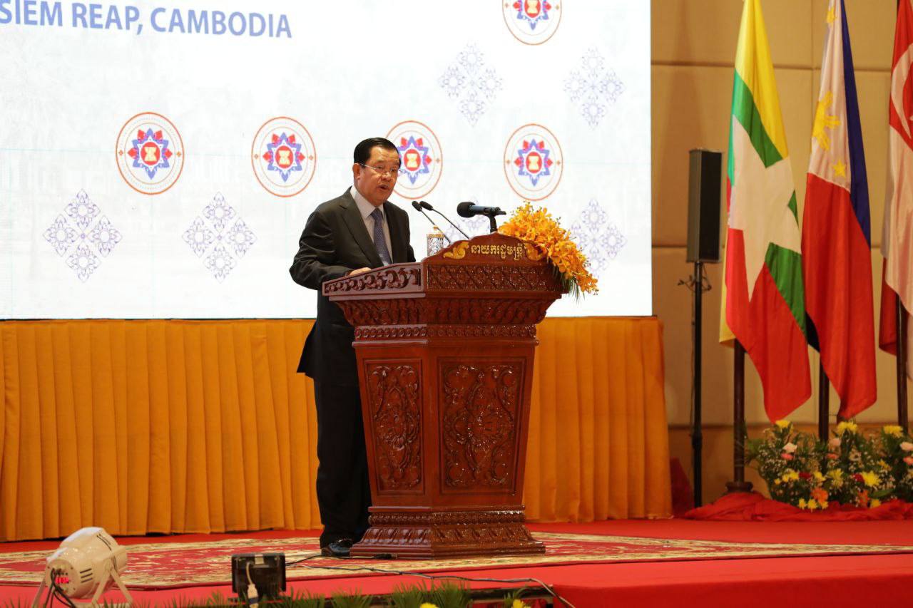 សម្តេចតេជោ ហ៊ុន សែន បានថ្លែងថា “ដំណើរការនៃការកសាងសហគមន៍អាស៊ានសេដ្ឋកិច្ចរបស់យើង បាននិងកំពុងបន្តប្រឈមនឹងឧបសគ្គដោយសារការផ្លាស់ប្តូរឥតឈប់ឈរនៃនិម្មាបនកម្មសេដ្ឋកិច្ច-ពាណិជ្ជកម្មតំបន់ និងសកល ដែលបណ្ដាលមកពីបញ្ហាស្មុគស្មាញប្រទាក់ក្រឡាគ្នា ជាច្រើន។”