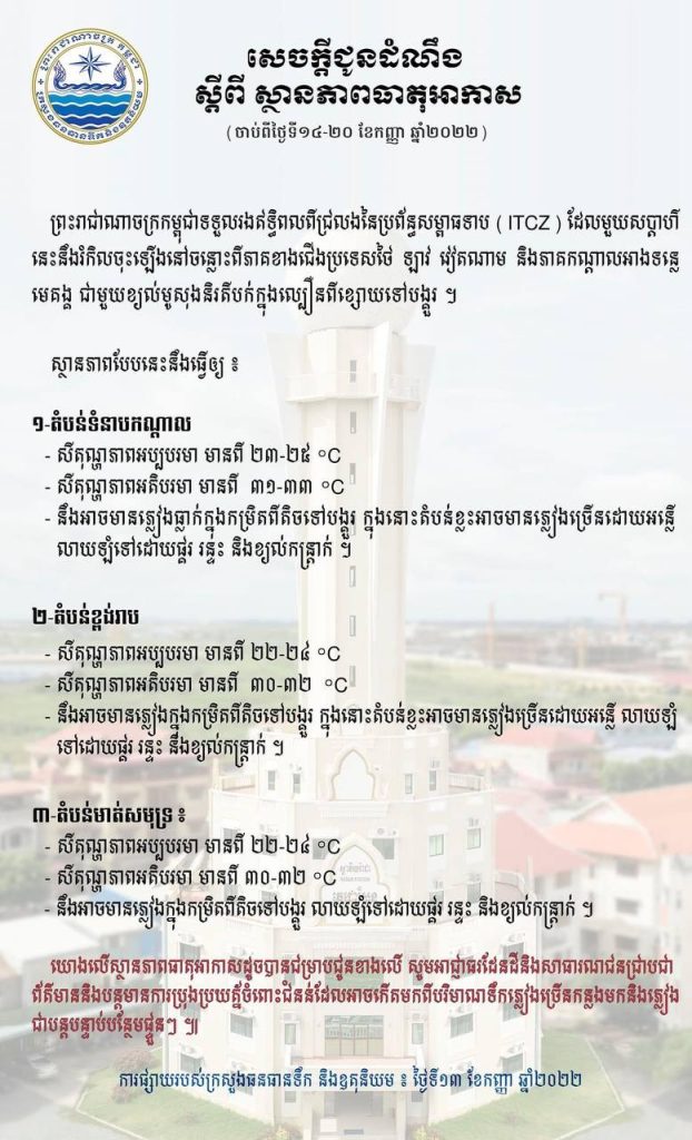 ស្ថានភាពធាតុអាកាស ១៤-២០ កញ្ញា