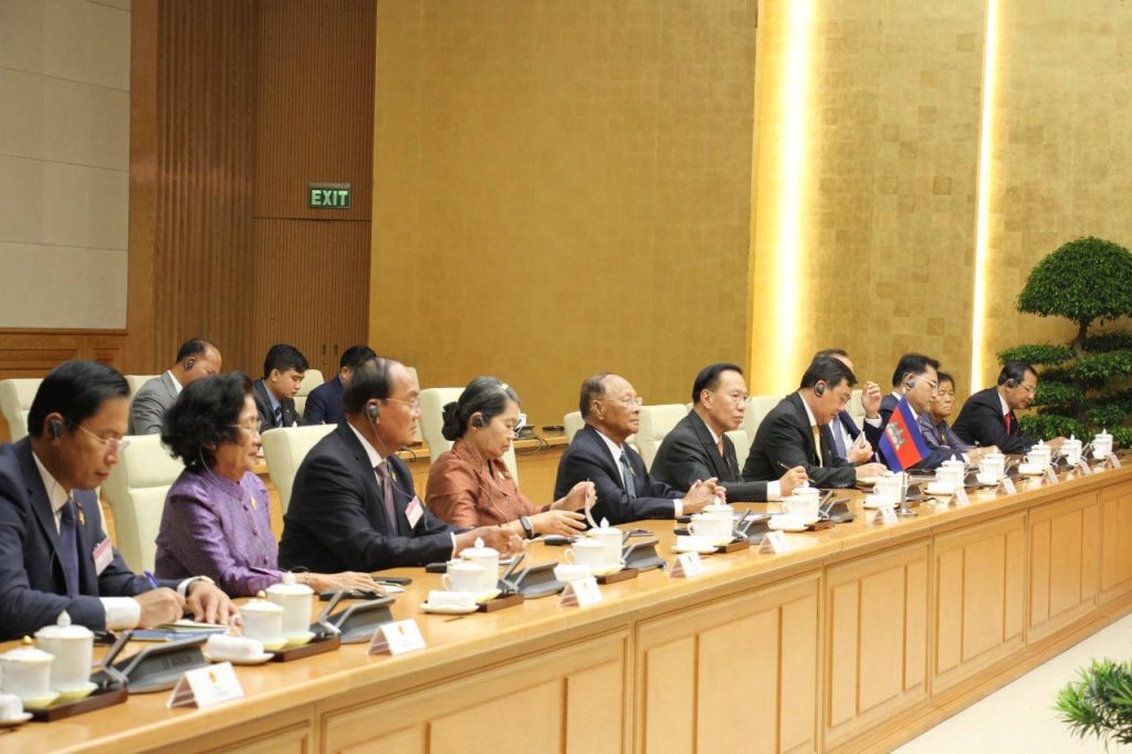 ភ្នំពេញ៖ សម្តេចអគ្គមហាពញាចក្រី ហេង សំរិនប្រធានរដ្ឋសភា នៃព្រះរាជាណាចក្រកម្ពុជា និង ឯកឧត្ដម ផាម ម៉ិញជិញ (Pham Minch Chinh) នាយករដ្ឋមន្រ្តីវៀតណាម បានលើកឡើងពីសារៈសំខាន់ នៃទំនាក់ទំនងមិត្តភាព និងកិច្ចសហប្រតិបត្តិការ លើគ្រប់វិស័យរវាងប្រទេសទំាងពីរកម្ពុជា-វៀតណាម ថាបានផ្តល់ផលប្រយោជន៍ដល់ប្រជាជនទាំងសងខាង។