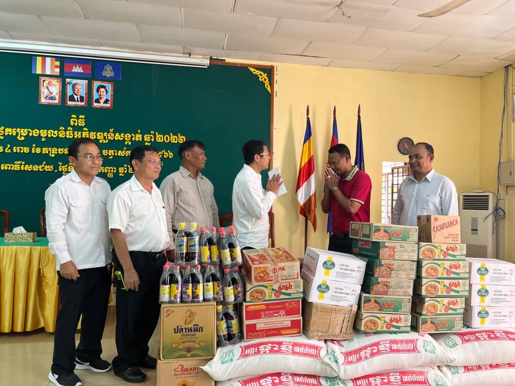 លោក ស្រឿន ស្រ៊ាន អគ្គនាយករងក្រុមហ៊ុនចំរើនសម្បត្តិ តំណាងលោក ឃិត ឈឿន អគ្គនាយកក្រុមហ៊ុន ចំរើនសម្បត្តិ ប្រគល់ជូនអំណោយនេះកាលពីព្រឹកថ្ងៃទី១៤ ខែកញ្ញា ឆ្នាំ២០២២ ។