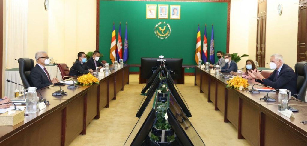 ឯកឧត្តម អគ្គបណ្ឌិតសភាចារ្យបាន ថ្លែងអំណរគុណចំពោះ កិច្ចសហប្រតិបត្តិការដ៏ល្អប្រសើរ រវាងរាជរដ្ឋាភិបាលកម្ពុជា និង EIB នាពេលកន្លងមក និងបានបញ្ជាក់ថា រាជរដ្ឋាភិបាលកម្ពុជា បានដាក់ឱ្យប្រើប្រាស់នូវ «ក្របខណ្ឌយុទ្ធសាស្រ្ត និងកម្មវិធីស្តារ និងជំរុញកំណើនសេដ្ឋកិច្ចកម្ពុជាក្នុងការរស់នៅជាមួយកូវីដ-១៩ តាមគន្លងប្រក្រតីភាពថ្មី សម្រាប់ឆ្នាំ ២០២១-២០២៣» ជាមួយនិងទស្សនវិស័យនៃការចាកចេញពីវិបត្តិនៃជំងឺកូវីដ-១៩ ក្នុងភាពរឹងមាំ និងការវិលត្រលប់ទៅរកមាគ៌ានៃកំណើន និងការអភិវឌ្ឍប្រកបដោយចីរភាព។ «យុទ្ធសាស្រ្ត» នេះបាន និងកំពុងដើរតួនាទីជាផែនទីបង្ហាញផ្លូវ និងជាកម្លាំងចលករដ៏មានប្រសិទ្ធភាព សម្រាប់ការពង្រឹងសក្តានុពលនៃចន្ទល់កំណើនសេដ្ឋកិច្ចរបស់កម្ពុជា ឱ្យរស់រវើកឡើង ក៏ដូចជាចាប់យកឱ្យបាននូវកាលានុវត្តភាពថ្មី ដែលកំពុងលេចឡើងស្របនឹងនិន្នាការតំបន់ និងសកល ដើម្បីលើកកម្ពស់កំណើនប្រកបដោយចីរភាព និងដែលកាន់តែមានពិពិធកម្ម ក៏ដូចជាដើម្បីកសាងភាពធន់ដ៏រឹងមាំនៃសង្គម សេដ្ឋកិច្ចកម្ពុជា។