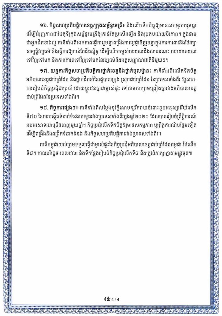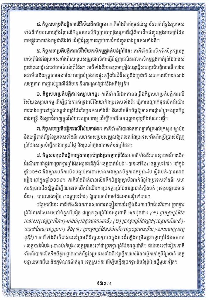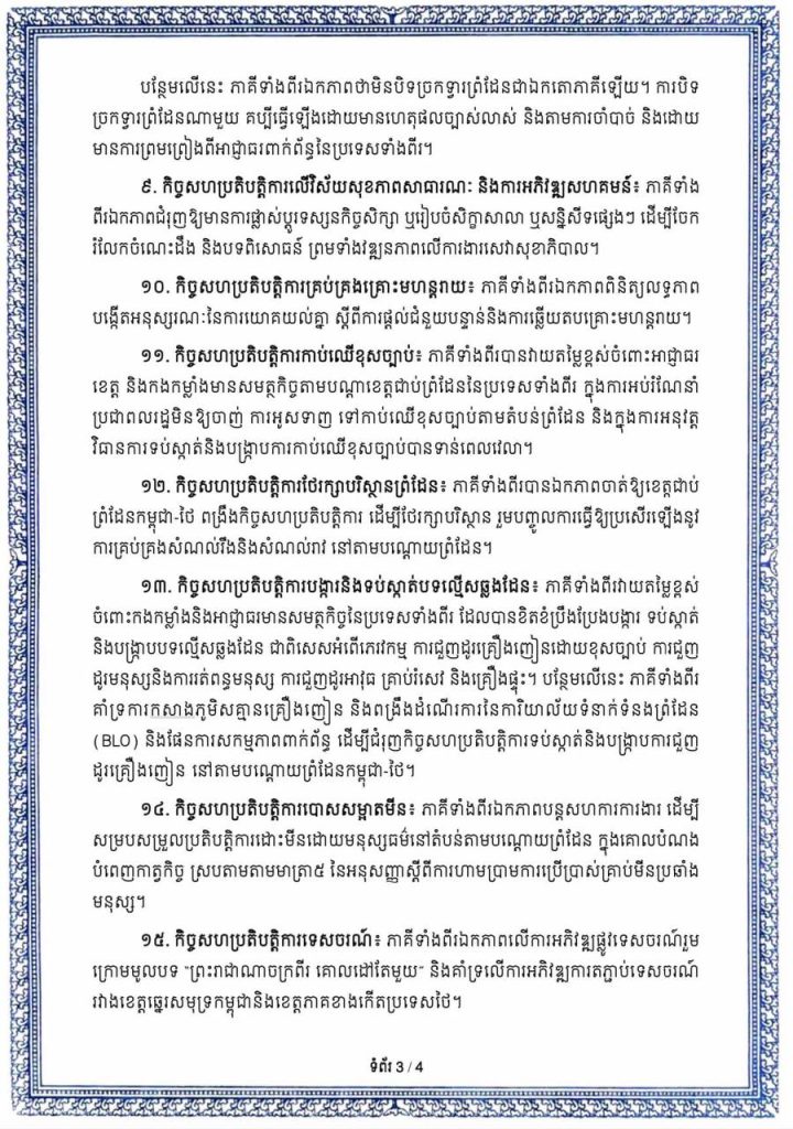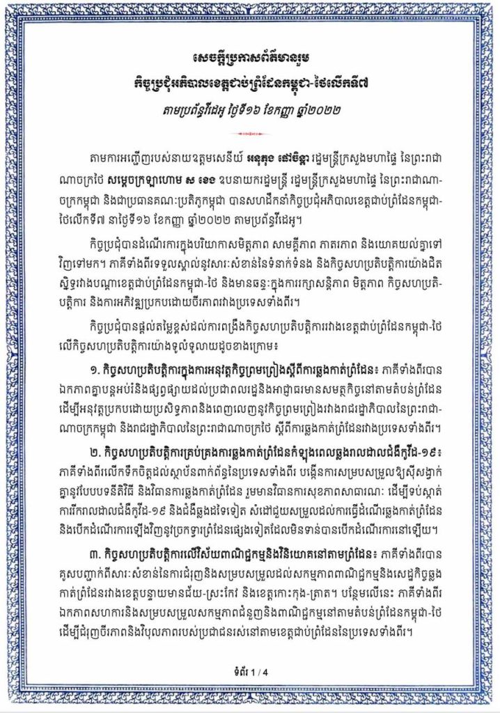 សេចក្ដីប្រកាសព័ត៌មានរួម ស្ដីពីកិច្ចប្រជុំអភិបាលខេត្តជាប់ព្រំដែន កម្ពុជា-ថៃ លើកទី៧