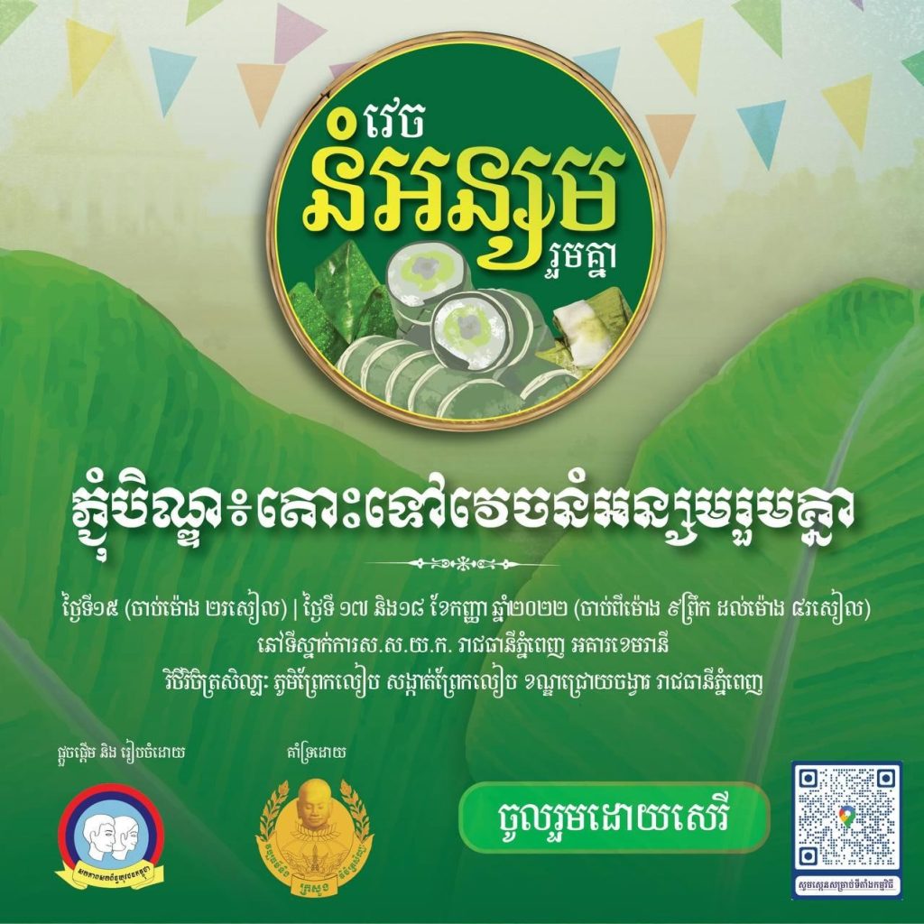 សហភាពសហព័ន្ធយុវជនកម្ពុជា (ស.ស.យ.ក) រៀបចំកម្មវិធី «ភ្ជុំបិណ្ឌ៖ តោះទៅវេចនំអន្សមរួមគ្នា» រយៈ ពេល៣ថ្ងៃ គឺចាប់ពីថ្ងៃទី១៥ ទី១៧ និងទី១៨ ខែកញ្ញា ឆ្នាំ២០២២ នៅស្នាក់ការ ស.ស.យ.ក រាជធានីភ្នំពេញ (អគារខេមរានី)។