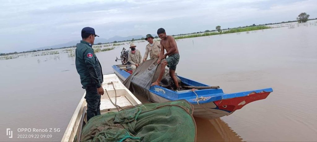 កំពង់ឆ្នាំង៖ លោក លីឡា នាយខណ្ឋរដ្ឋបាលជលផលកំពង់ឆ្នាំង បានឲ្យដឹងថា អនុវត្តតាមបទបញ្ជារប្រមុខរាជរដ្ឋាភិបាល និងបទបញ្ជាររបស់ ឯកឧត្តម ស៊ុន សុវណ្ណារិទ្ធិ គណៈបញ្ជាការឯកភាពរដ្ឋបាលខេត្ត នៅព្រឹកថ្ងៃទី២២ ខែកញ្ញា ឆ្នាំ២០២២ កម្លាំងសម្ថកិច្ចខណ្ឌរដ្ឋបាលជលផលកំពង់ឆ្នាំងសហការជាមួយគណៈបញ្ជាការឯកភាពស្រុកកំពង់លែងនិងសហគមន៍នេសាទ បានចុះប្រតិបត្តិការបង្រ្កាបបទល្មើសជលផល នៅចំណុចនគរទ្វីប និងចំណុចទំនប់ ក្នុងស្រុកកំពង់លែង ខេត្តកំពង់ឆ្នាំង ។ ក្នុងកិច្ចប្រតិបត្តិការបង្ក្រាបបទល្មើសនេសាទខាងលើនេះបានប្រើប្រាស់កម្លាំងសរុប ២២នាក់ និង មធ្យោបាយកាណូតស្មាច់ចំនួន ០៦គ្រឿង។