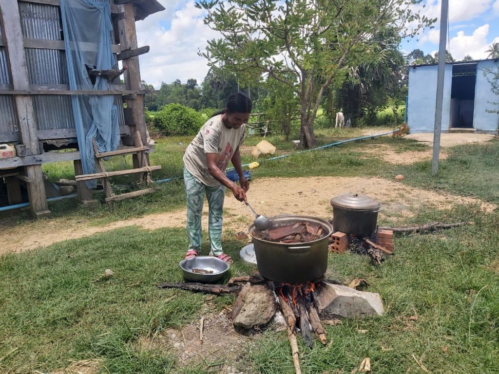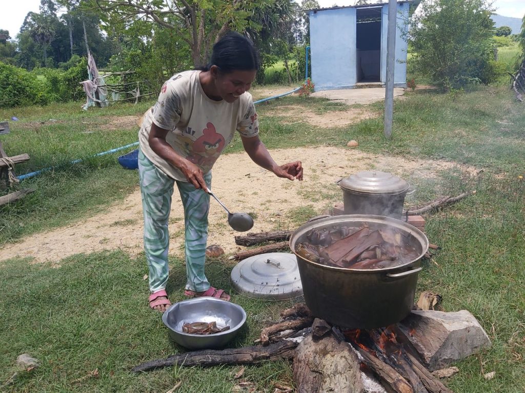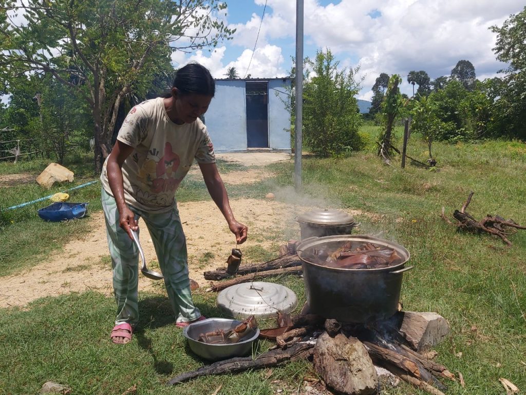 កំពុងវេចខ្ចប់នំ និងដាក់ស្ងោរនំអន្សមជ្រូក និង អន្សមចេកផង អ្នកស្រី សាយគិន សព្វថ្ងៃរស់នៅ ភូមិទំនាប ឃុំអមលាំង ស្រុកថ្ពង ខេត្តកំពង់ស្ពឺបានឱ្យដឹងថា អ្នកស្រីមិនដែលភ្លេចសោះឡើយក្នុងការវេចនំពអន្សមទាំងនេះសម្រាប់យកទៅវត្ត និងពិសេសទុកនំទាំងនេះសម្រាប់ឱ្យកូនចៅបរិភោគក្នុងថ្ងៃបុណ្យប្រពៃណីជាតិ។