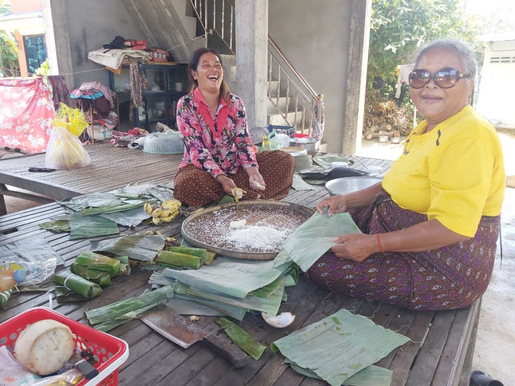 ក្នុងទឹកមុខសប្បាយរីករាយជាមួយនឹងកូនចៅជាច្រើននាក់ដែលទើបមកទីកន្លែងផ្សេងៗហើយមកជួបជុំផ្ទះលោកយាយក្នុងថ្ងៃបុណ្យភ្ជុំបិណ្ឌនាឆ្នាំនេះ លោកយាយបានប្រាប់ថា “ខ្ញុំវេចនំនេះក្រៅពីបង្ហាញពីទម្លាប់ចាស់ទុំបុរាណយើងហើយ វាក៏ទុកសម្រាប់ជាទម្លាប់ការវេចនំខ្មែរយើងដល់កូនចៅជំនាន់ក្រោយបន្តទៀត។នំនេះជានំខ្មែរយើងមិនត្រូវបោះបង់វាទេ! ចាស់ទុំយើងបានចេះធ្វើនំទាំងនេះយូរលង់ណាស់មកហើយ ហេតុនេះយើងត្រូវចេះបង្រៀនកូនចៅយើងបន្តទៀត។ខ្ញុំសប្បាយចិត្តនឹងវេចនំ និងក៏សប្បាយចិត្តពិធីបុណ្យរបស់យើងមកដល់ម្តងៗក្នុងការវេចនេះដែរ”។