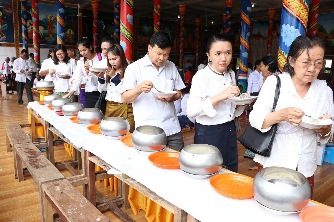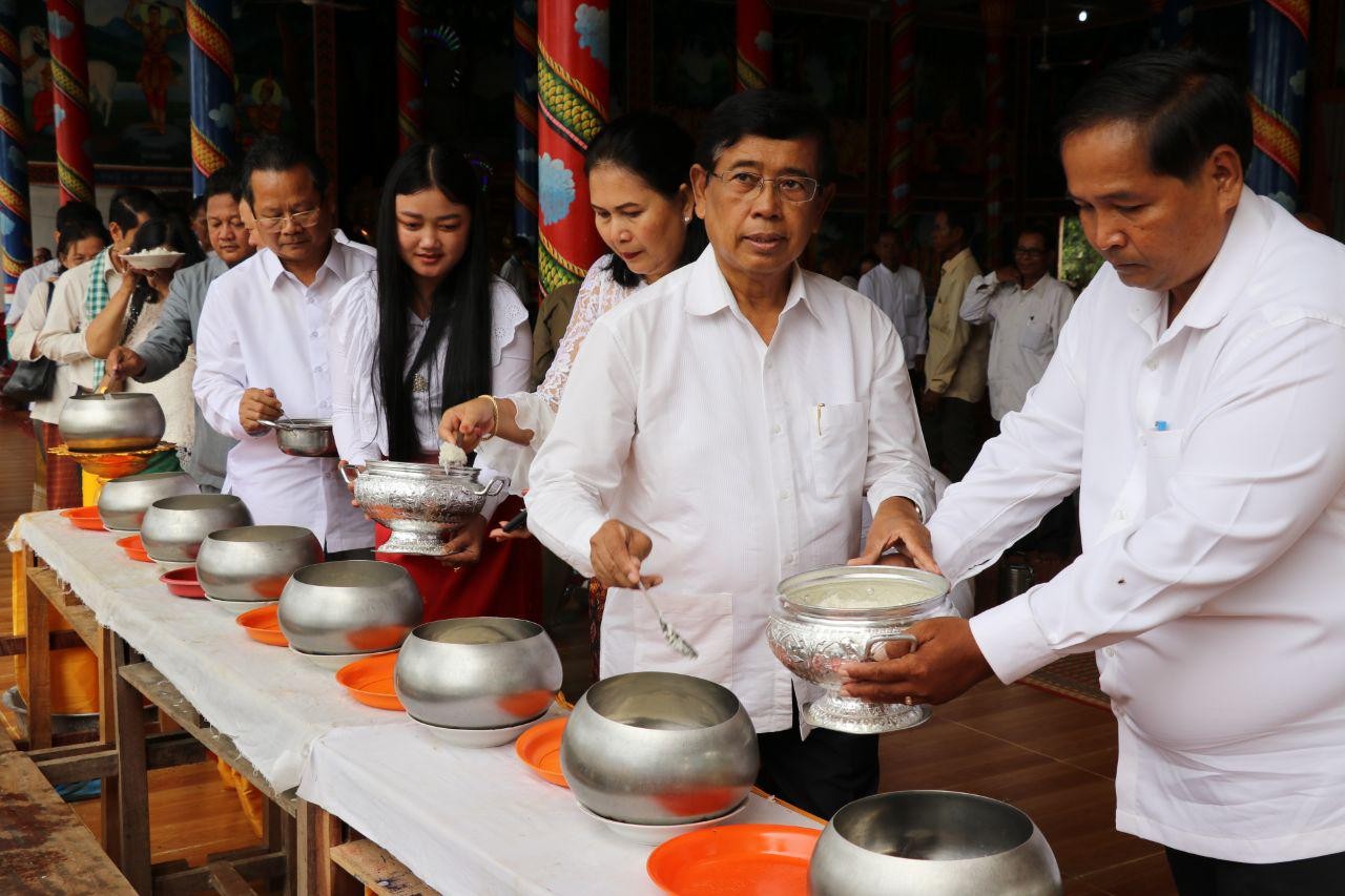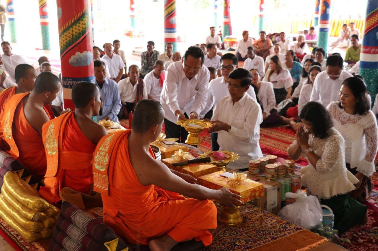 បន្ទាប់ពីប្រគេនទេយ្យទានដល់ព្រះសង្ឃ និងបច្ច័យកសាងក្នុងវត្តរួចមក ឯកឧត្តមទេសរដ្ឋមន្ត្រីបានមានប្រសាសន៍ថា យើងមកកាន់បិណ្ឌ ធ្វើបុណ្យរួមគ្នា ដើម្បីបន្តលើកកម្ពស់តម្លៃព្រះពុទ្ធសាសនា និងប្រពៃណីជាតិយើងឱ្យកាន់តែប្រសើរថែមទៀត។ យើងសព្វថ្ងៃមានការរីកចម្រើនដូចឃើញមានសមិទ្ធផលនានាកសាងជាច្រើននៅក្នុងវត្ត។ ហើយយើងធ្វើបុណ្យជាមួយគ្នា ចូលរួមសាង កុសលជាមួយគ្នា និងប្រជាពលរដ្ឋចេះស្រឡាញ់គ្នា។ រាជរដ្ឋាភិបាលបាននិងកំពុងដឹកនាំឱ្យរួបរួមគ្នាឈានទៅសម្រេចគោលដៅក្នុងការរក្សាសន្តិភាព និងបន្តការអភិវឌ្ឍ។ សូមជឿទុកចិត្តថាយើងមិនក្រទៀតទេ យើងមានធនធានហើយ។ យើងសព្វថ្ងៃមានទ្រព្យ និងថវិកាបម្រុងសម្រាប់ធានាដំណើរការ៦ខែទៅមុខដោយមិនមានបញ្ហា។ អ្វីដែលយើងកំពុងធ្វើគឺយើងចង់បន្តអ្វីជាលក្ខណៈខ្មែរ។ ប៉ុន្តែ មានអ្នកនយោបាយខ្លះមិនទទួល ស្គាល់ការរីកចម្រើននោះទេ គេរារាំងវិនិយោគិនមិនឱ្យមករកស៊ី បញ្ចុះបញ្ចូលម្ចាស់ជំនួយកុំឱ្យផ្តល់ជំនួយ ហើយថាខ្លួនឯងស្នេហាជាតិ។
