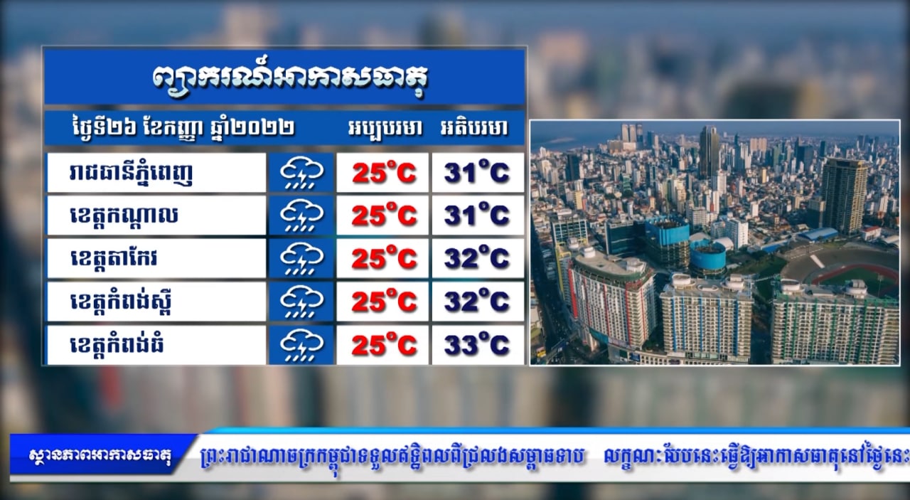 ព្យាករណ៌អាកាសធាតុ សម្រាប់ថ្ងៃទី២៦ កញ្ញា ២០២២ (មានវីដេអូ)
