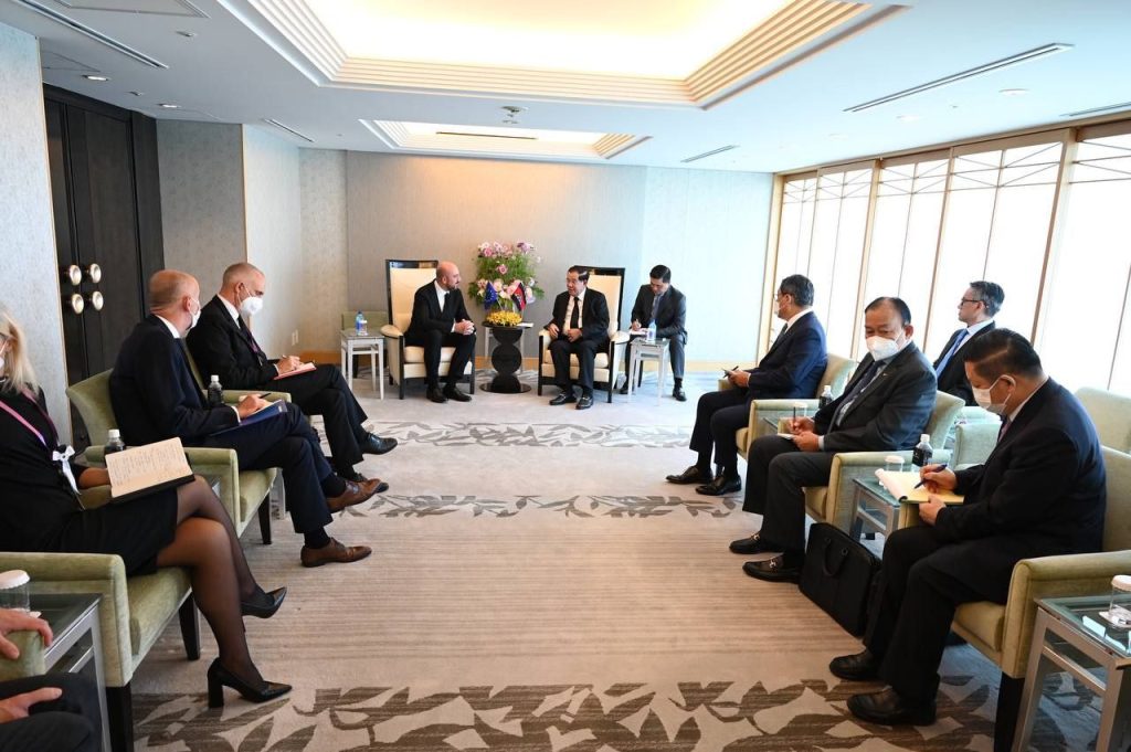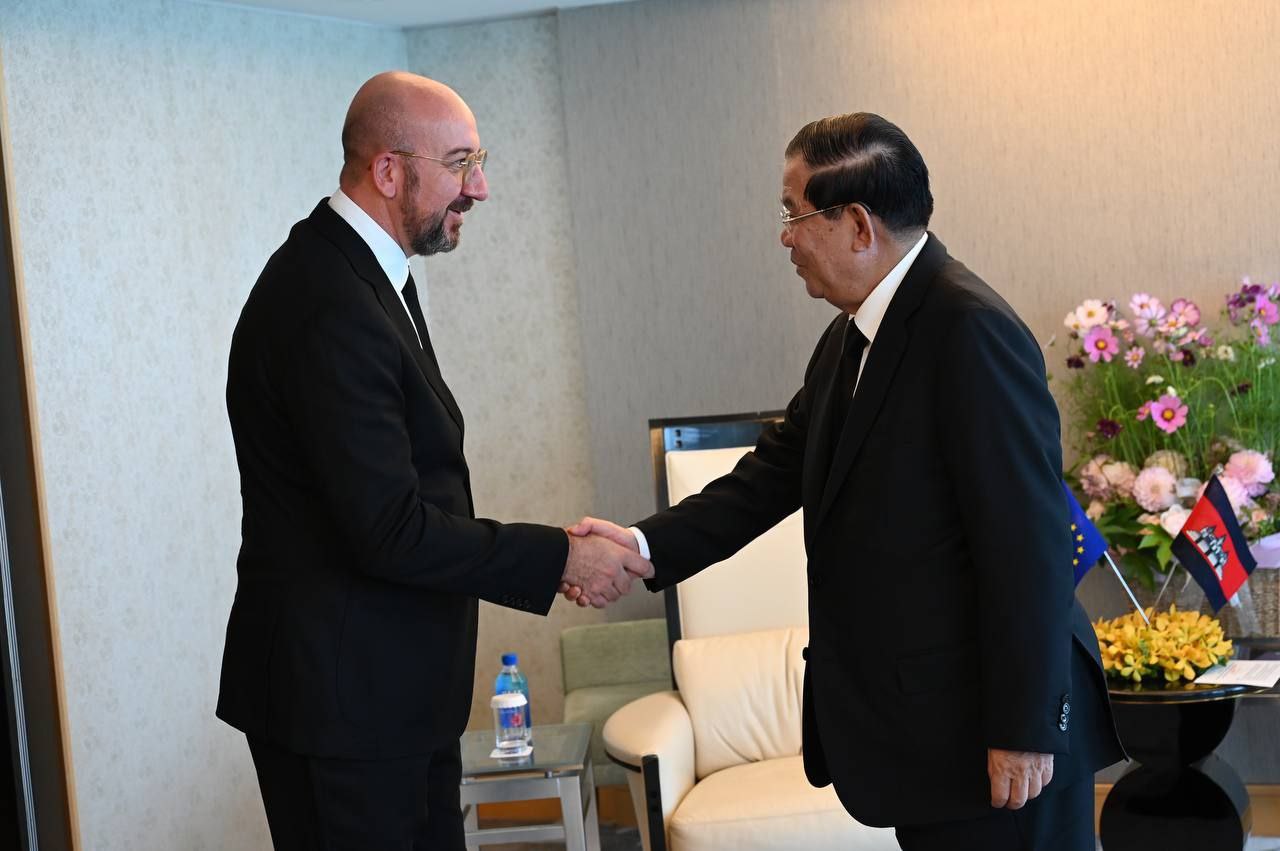 តូក្យូ៖ សម្តេចអគ្គមហាសេនាបតីតេជោ ហ៊ុន សែន នាយករដ្ឋមន្រ្តី នៃព្រះរាជាណាចក្រកម្ពុជា បានអនុញ្ញាតឲ្យលោក Charles Michel ប្រធានក្រុមប្រឹក្សាអឺរ៉ុប ចូលជួបសំដែងការគួរសម និងពិភាក្សាការងារ នៅទីក្រុងតូក្យូ ប្រទេសជប៉ុន នាព្រឹកថ្ងៃទី២៧ ខែកញ្ញា ឆ្នាំ២០២២ ។នេះបើយោងតាមប្រភពទំព័រហ្វេសប៊ុលផ្លូវការរបស់សម្តេចតេជោ ហ៊ុន សែន៕