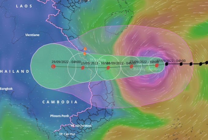 គិតត្រឹមព្រឹកថ្ងៃអង្គារនេះ ព្យុះមានចម្ងាយប្រហែល ១៧០គីឡូម៉ែត្រពីទីក្រុង Da Nang និង ១២០គីឡូម៉ែត្រពីខេត្ត Quang Nam ភាគខាងត្បូង។ នៅម៉ោង ៧ ព្រឹកថ្ងៃពុធ វានឹងរំកិលទៅទិសខាងត្បូងបន្តិច ឆ្ពោះទៅលើខេត្ត Quang Tri, Thua Thien Hue, Quang Nam និង Quang Ngai និង Da Nang ហើយមានខ្យល់បក់ក្នុងល្បឿន ១៤៩គីឡូម៉ែត្រក្នុងមួយម៉ោង ។