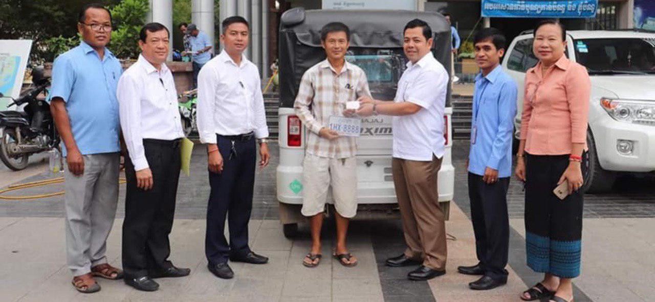 រដ្ឋបាលខណ្ឌចំការមន ប្រគល់ស្លាកលេខត្រីចក្រយានយន្ត ជូនប្រជាពលរដ្ឋដែលមកទទួល សេវាវិស័យសាធារណការ នៅការិយាល័យច្រកចេញចូលតែមួយ