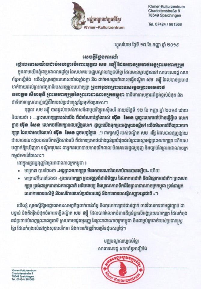 មជ្ឈមណ្ឌលវប្បធម៌ខ្មែរ នៅសាធារណរដ្ឋសហព័ន្ធអាល្លឺម៉ង់ ថ្កោលទោសដាច់អហង្ការលើជនក្បត់ជាតិ សម រង្ស៉ីព័ត៌មានអត្ថបទដោយ៖Kien Sereyvuth Kien SereyvuthIT Technical Supportអត្ថបទមុនអត្ថបទបន្ទាប់