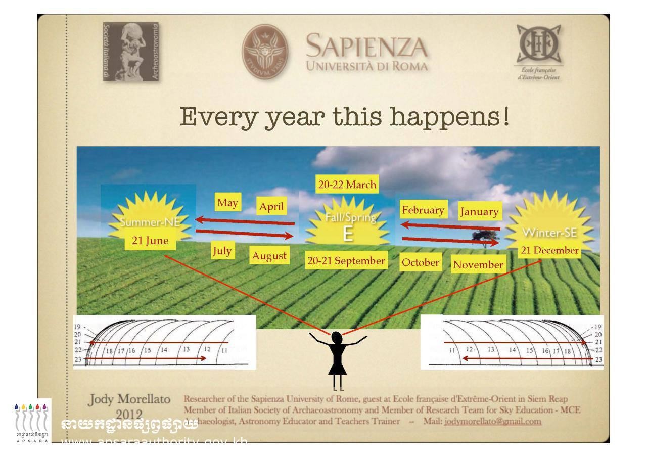 ព្រឹត្តិការណ៍ព្រះអាទិត្យរះចំកណ្ដាលកំពូលប្រាសាទអង្គរវត្ត ឬសមរាត្រីនឹងកើតឡើងទៀតហើយ នៅចន្លោះថ្ងៃ ទី២០ ដល់ថ្ងៃទី២២ខែកញ្ញានេះ។ ជារៀងរាល់ឆ្នាំ សមរាត្រី (Equinox) តែងតែកើតមាន២ដង គឺនៅរដូវប្រាំង ដែលតែងកើតមាន នៅខែមីនា និងសមរាត្រីរដូវវស្សា តែងកើតទ្បើងនៅខែកញ្ញា។ សមរាត្រីគឺជាវេលាដែល ថ្ងៃនិងយប់មានរយៈពេលស្មើគ្នា។ ដោយឡែកក្នុងករណីពិសេសនៃសមរាត្រីនៅប្រាសាទអង្គរវត្ត ដែលវេលាថ្ងៃ និងយប់មានរយៈពេលស្មើគ្នានេះ ព្រះអាទិត្យតែងតែរះទ្បើងចំកំពូលកណ្តាលនៃអង្គរវត្តនាព្រឹកព្រលឹមស្រាងៗ។ យោងតាមសេចក្តីជូនដំណឹងរបស់ក្រសួងទេសចរណ៍ ព្រឹត្តិការណ៍សមរាត្រីនៅប្រាសាទអង្គរ នឹងរំពឹងកើតមាន រវាងពីថ្ងៃទី២០ដល់ថ្ងៃទី២២ ខែកញ្ញានេះ ដែលពេលនោះព្រះអាទិត្យនឹងរះទ្បើងចំកំពូលកណ្តាល ដែលអ្នកទស្ស នា អាចមើលឃើញពីក្លោងទ្វារកណ្តាលនៃគុកតារាជ ក្លោងទ្វារធំខាងលិច ចាប់ម៉ោង៥ ទាបភ្លឺ ដល់ម៉ោងប្រ មាណ៧ព្រឹក។