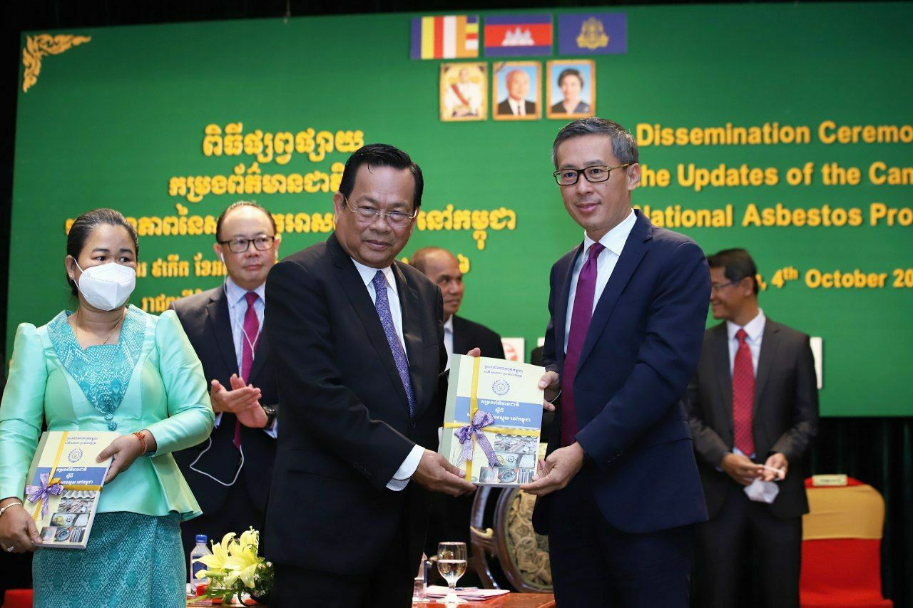 ទន្ទឹមនេះ ឯកឧត្តមរដ្ឋមន្រ្តី បានថ្លែងអំណរគុណចំពោះក្រុមការងារកសាងកម្រងព័ត៌មានជាតិ ស្តីពីសារធាតុអាសបេស្តុសនៃព្រះរាជាណាចក្រកម្ពុជា ដែលបានខិតខំប្រឹងប្រែងប្រមែប្រមូលផ្តល់ទិន្នន័យ ព័ត៌មាន និងរបាយការណ៍នានា ពីក្រសួងស្ថាប័នពាក់ព័ន្ធ ដែលបានចុះធ្វើការអង្កេតលើក្រុមហ៊ុនវិស័យសំណង់ដោយផ្ទាល់។