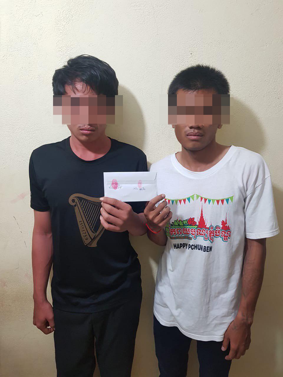 ជនសង្ស័យឈ្មោះ សំណាង ងិន ភេទប្រុស អាយុ២៣ឆ្នាំ និងឈ្មោះ ហេង សុផានិត ភេទប្រុស អាយុ២៧ឆ្នាំ (អ្នកទាំងពីរមានមុខរបរសន្តិសុខឯកជន ស្នាក់នៅបន្ទប់ជួល ភូមិភ្នំពេញថ្មី សង្កាត់ភ្នំពេញថ្មី ខណ្ឌសែនសុខ)។ ក្នុងនោះសមត្ថកិច្ចដកហូតបាន ៖ ក្រាមសថ្លា០១កូនថង់តូច ទូរសព្ទដៃ០២គ្រឿង និងម៉ូតូ០១គ្រឿង។