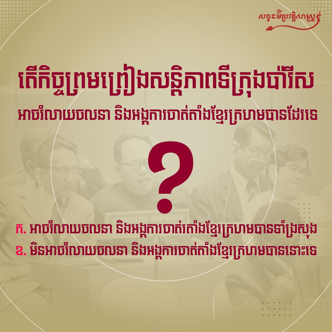 តើកិច្ចព្រមព្រៀងសន្តិភាពទីក្រុងប៉ារីស អាចរំលាយចលនា និងអង្គការចាត់ខ្មែរក្រហមបានដែរទេ?កិច្ចព្រមព្រៀងទីក្រុងប៉ារីស៍សច្ចធម៌ប្រវត្តិសាស្ត្រអត្ថបទដោយ៖លី ប៊ុនហេង - Ly Bunheng សច្ចធម៌ប្រវត្ដិសាស្រ្ដ #ព្រះរាជាណាចក្រកម្ពុជា #នាយករដ្ឋមន្រ្ដី #សម្ដេចតេជោ #សន្តិភាព #អង្គការចាត់ខ្មែរក្រហម #កិច្ចព្រមព្រៀងសន្តិភាពទីក្រុងប៉ារីស Facebook Page: សច្ចធម៌ប្រវត្ដិសាស្រ្ដTelegram Channel លី ប៊ុនហេង - Ly Bunhengលី ប៊ុនហេង ប្រធានផ្នែកផ្សព្វផ្សាយ នៃសច្ចធម៌ប្រវត្តិសាស្រ្ដអត្ថបទមុនអត្ថបទបន្ទាប់