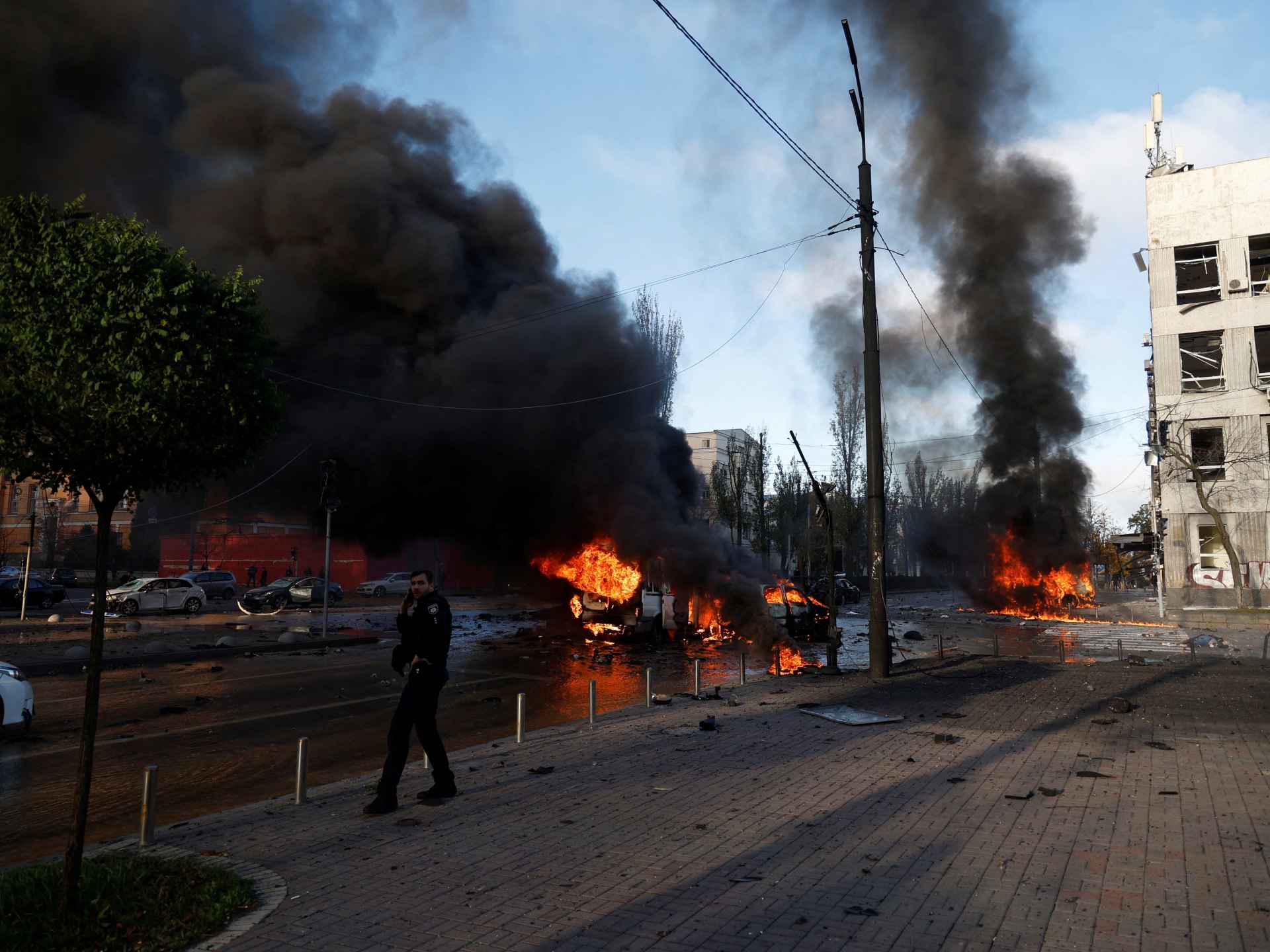 ជាមួយគ្នានេះផងដែរ នៅព្រឹកថ្ងៃចន្ទនេះ តំបន់និងទីក្រុងជា ច្រើន របស់អ៊ុយក្រែន រួមទាំងរដ្ឋធានីកៀវ ក្រុងអូដេសា និងក្រុងនីប៉ឺរ តំបន់ ខាកៀវ លីវ ហ្សាប៉ូរីចា ហ្សូម៊ី Khmelnytskyi សុទ្ធតែរកការ វាយ ប្រហារដោយមីស៊ីលពីអ៊ុយក្រែន ដែលធ្វើឱ្យខូចខាតហេដ្ឋា រចនា សម្ព័ន្ធស៊ីវិល រួមទាំងផ្លូវ ស្ថានីយរថភ្លើង ខណៈអគ្គិសនីនៅ តាម ទីក្រុង និងតំបន់មួយចំនួនត្រូវបានកាត់ផ្ដាច់ ដោយសារតែការវាយ ប្រហារ។ បើតាមខ្សែរវីដេអូជាច្រើន ដែលគេបង្ហោះចែកចាយនៅលើ បណ្ដាញសង្គមធ្វីតធ័រនិងប្រព័ន្ធផ្សព្វផ្សាយផ្សេងៗ បង្ហាញឱ្យឃើញ ពីពលរដ្ឋអ៊ុយក្រែនជាច្រើនកំពុងរត់ជ្រកកោននៅទីកន្លែងមានសុវត្ថិភាពខណៈរូបភាពថ្មីៗជាច្រើនបង្ហាញពីផ្សែងខ្មៅហុយទ្រលោមនៅលើបណ្ដាទីក្រុងផ្សេងៗ ដែលរងការវាយប្រហារ។