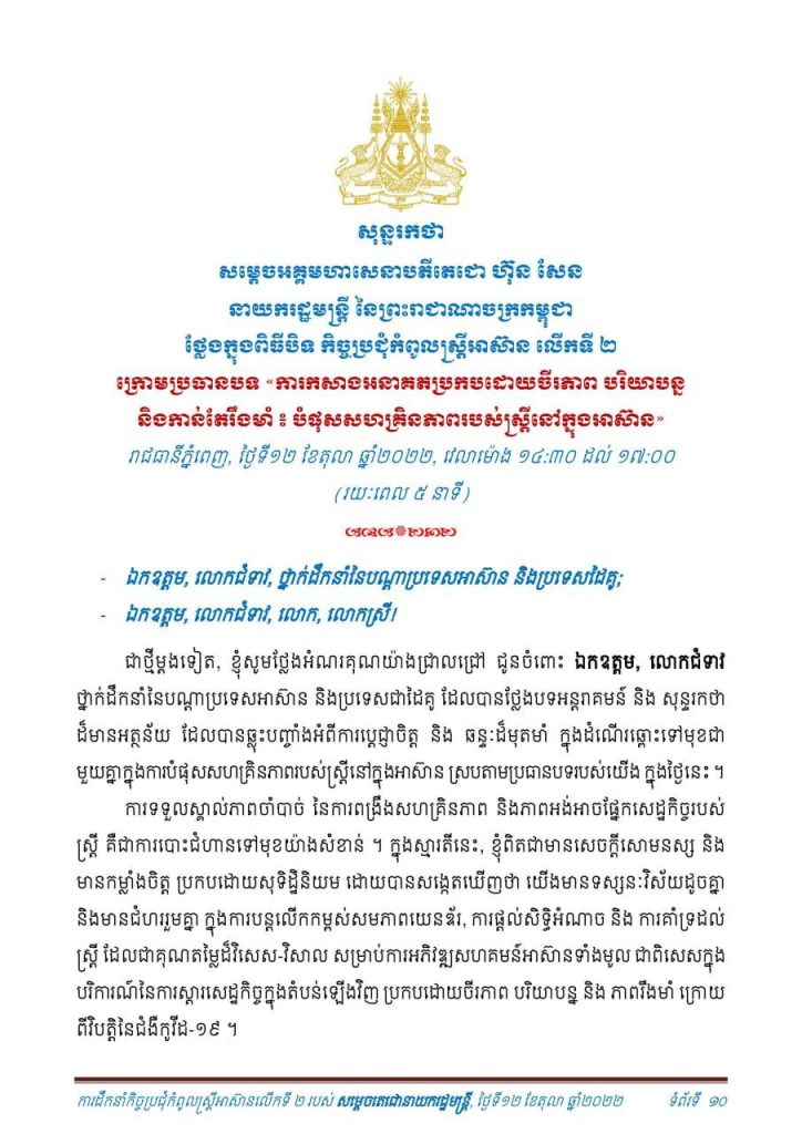 សុន្ទរកថាទាំងស្រុងសម្តេចតេជោ ហ៊ុន សែន ថ្លែងបិទកិច្ចប្រជុំកំពូលស្ត្រីអាស៊ានលើកទី២One-Minuteអត្ថបទដោយ៖AMS OneMinute #ams1minute AMS OneMinuteអត្ថបទមុនអត្ថបទបន្ទាប់