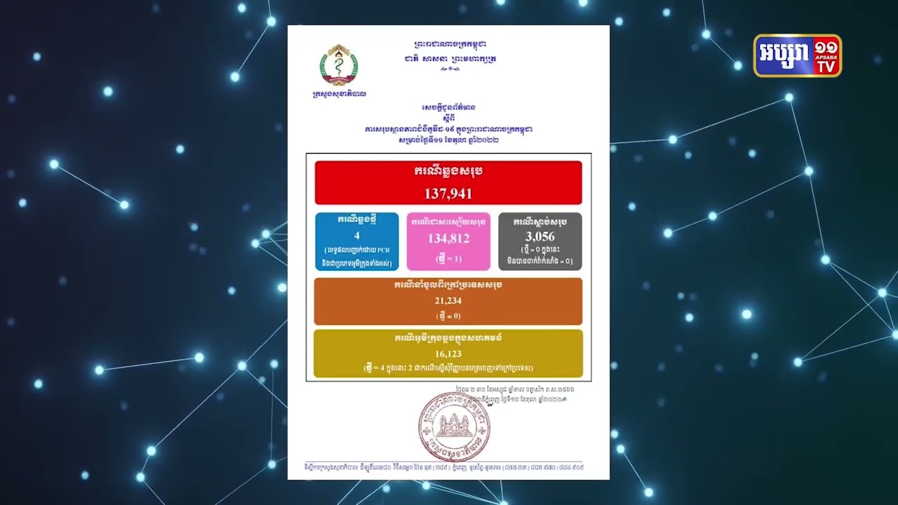 ២៤ម៉ោងនៅកម្ពុជាឆ្លងកូវីដ ៤នាក់ (Video Inside)