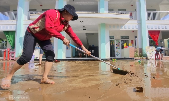 មនុស្សពីរនាក់បានស្លាប់ និងម្នាក់បាត់ខ្លួនបន្ទាប់ពីការបាក់ដី នៅជិតរោងចក្រវារីអគ្គិសនី។ ប៉ុន្តែមកដល់ព្រឹកថ្ងៃពុធម្សិលមិញ ទឹកបានស្រកចុះ ហើយអ្នកស្រុក និងអ្នកជួយសង្គ្រោះកំពុងបោសសម្អាតភក់ចេញពីផ្ទះ និងសាលារៀន៕ ប្រភពពី VNexpress, ដោយ៖ សារ៉ាត