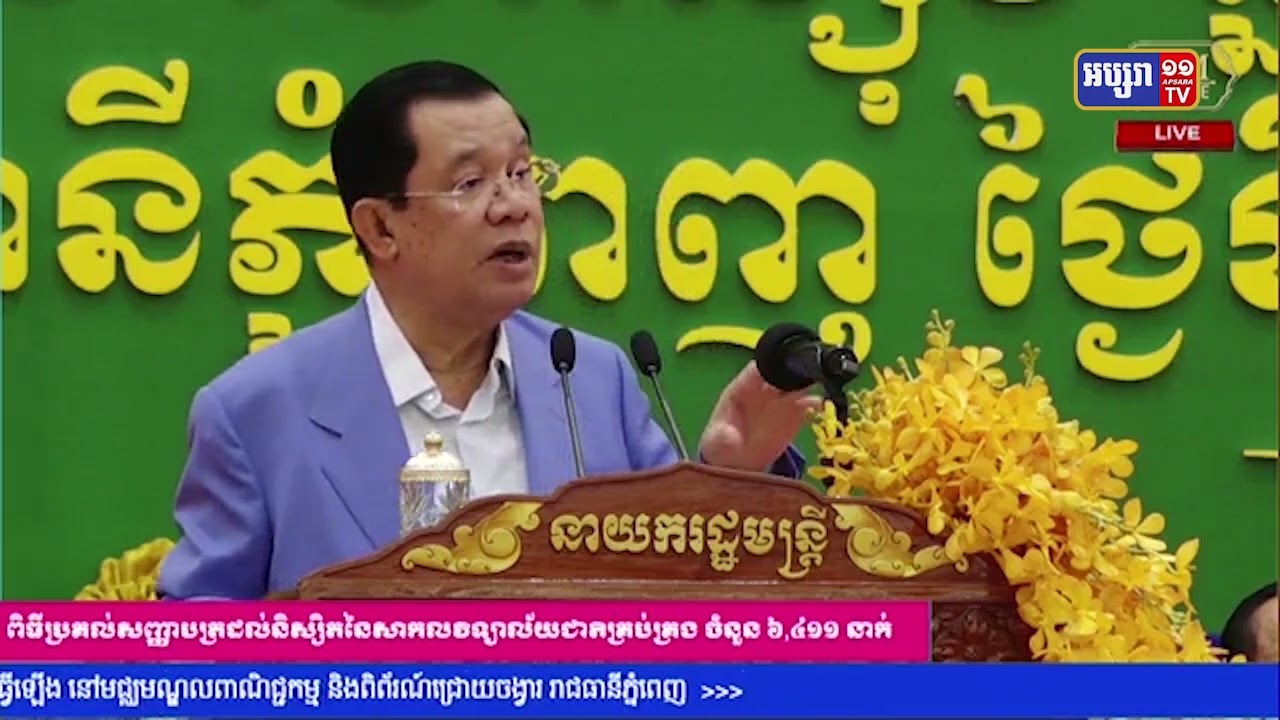 ក្នុងប្រសាសន៍របស់សម្តេចថ្ងៃទី១៧តុលាក្នុងពិធីប្រគល់សញ្ញាបត្រជូននិស្សិត សាកលវិទ្យា ល័យជាតិគ្រប់គ្រង ក្នុងរាជធានីភ្នំពេញ សម្តេចបានថ្លែងប្រាប់រដ្ឋមន្ត្រីថ្មីក្រសួងកសិកម្មដែល ទើបឡើងកាន់តំណែងថ្ងៃច័ន្ទនេះ ត្រូវប្រញាប់ធ្វើកិច្ចការសង្គ្រោះទាំងនេះ។