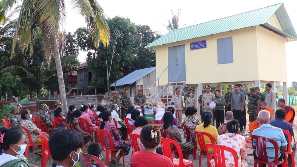 ពិធីប្រគល់ផ្ទះ ឧត្តមសេនីយ៍ទោ សោម ស៊ុន បានឧបត្ថម្ភ អំណោយឯកឧត្តមឧត្តមសេនីយ៍ឯក ហ៊ុន ម៉ាណែត និងលោកជំទាវ ពេជ ចន្ទមុន្នី ជូនគ្រួសារអតីតយុទ្ធជនពលី មានអង្ករចំនួន ៥០គ.ក មី២កេស ទឹកត្រី ទឹកស៊ីអ៊ីវ ២យួរ ត្រីខ ១យួរ ទឹកសុទ្ធ០១កេស ឆ្នាំង ចាន ស្លាបព្រា ចានដែក និងសម្ភារៈផ្សេងៗទៀត ព្រមទាំងថវិកាមួយចំនួនផងដែរ ។