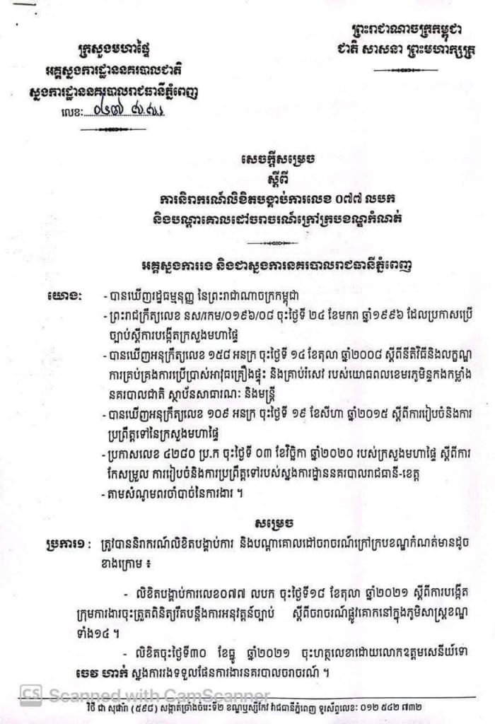 ស្នងការនគរបាលរាជធានីភ្នំពេញ សម្រេចលុបចោលក្រុមការងារត្រួតពិនិត្យរឹតបន្ដឹងច្បាប់ចរាចរណ៍ក្នុងភូមិសាស្ដ្រខណ្ឌទាំង១៤One-Minuteអត្ថបទដោយ៖AMS OneMinute #ams1minute AMS OneMinuteអត្ថបទមុនអត្ថបទបន្ទាប់