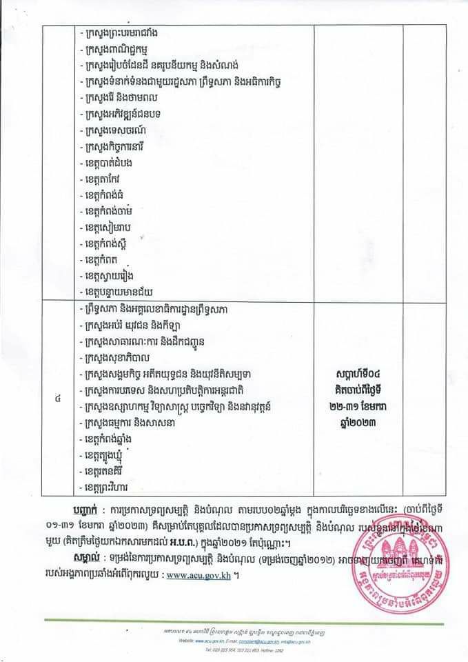 អង្គភាពប្រឆាំងអំពើពុករលួយជូនដំណឹងពីប្រកាសទ្រព្យសម្បត្តិ និងបំណុល តាមរបប ២ឆ្នាំ សម្រាប់ឆ្នាំ២០២៣