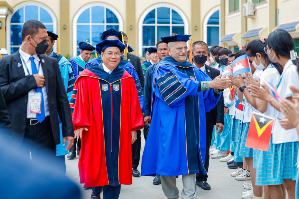 ឯកឧត្តមបណ្ឌិត លី ឆេង បានបន្ដថា ការប្រគល់សញ្ញាបត្របណ្ឌិតកិត្តិយស នាពេលនេះធ្វើឡើង បន្ទាប់ពីក្រុមប្រឹក្សាវិទ្យាសាស្ត្រ នៃសាកលវិទ្យាល័យបានពិនិត្យ និងវាយតម្លៃយ៉ាងហ្មត់ចត់លើ ប្រវត្តិស្នាដៃ សមិទ្ធផល និងគុណសម្បត្តិជាច្រើន របស់ឯកឧត្តមបណ្ឌិត ចូហ្សេ រ៉ាមូស អរតា ប្រធានាធិបតី នៃសាធារណរដ្ឋប្រជាធិបតេយ្យទីម័រខាងកើត ដែលបានបំពេញគ្រប់លក្ខខណ្ឌ និងមានតម្លៃលើសលុបជាសកល ក្នុងកិច្ចការអប់រំ និងភាពជាអ្នកដឹកនាំ ដើម្បីឯករាជ្យជាតិ សន្តិភាព និងការអភិវឌ្ឍសម្រាប់ប្រទេសជាតិ និងប្រជាជន និងជាគំរូ សម្រាប់យុវជនជំនាន់ក្រោយ។