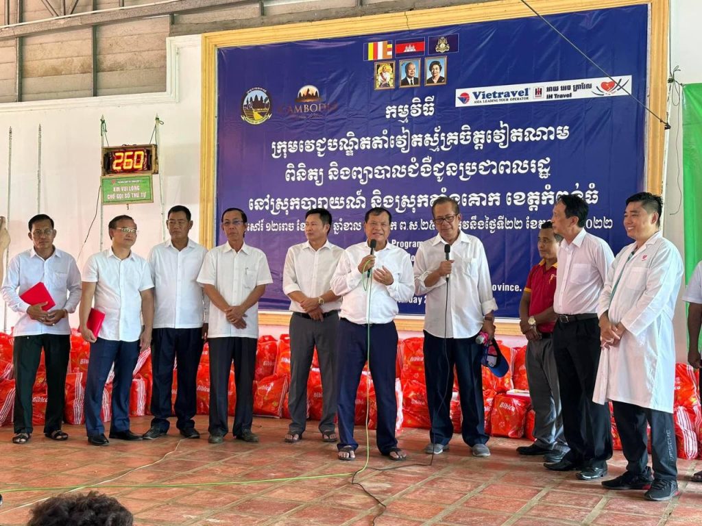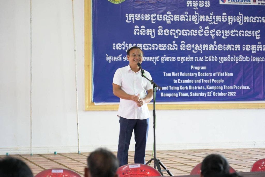 ខេត្តកំពង់ធំ៖ នៅថ្ងៃសៅរ៍ ទី២២ ខែតុលា ឆ្នាំ២០២២ តាមរយៈកិច្ចសម្របសម្រួលរវាងក្រសួងទេសចរណ៍ ជាមួយក្រុមហ៊ុនទេសចរណ៍វៀតណាម Vietravel និង IH Travel ក្រុមវេជ្ជបណ្ឌិតតាំវៀតស្ម័គ្រចិត្តវៀតណាមចំនួន ១២០នាក់ បានចុះមកពិនិត្យ និងព្យាបាលជំងឺជូនប្រជាពលរដ្ឋប្រមាណ ០១ពាន់នាក់ (ស្រុកបារាយណ៍ ៦០០នាក់ និងស្រុកតាំងគោក ៤០០នាក់)។