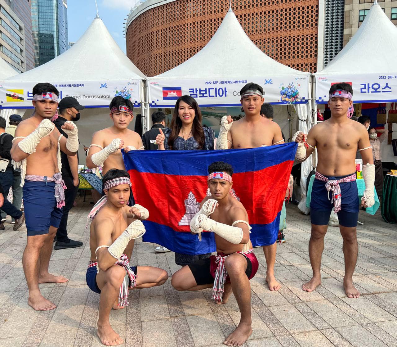 ស្ថានទូតខ្មែរនៅកូរ៉េខាងត្បូង បានបង្ហាញពីវប្បធម៍ ផលិតផល ម្ហូបអាហារ សម្លៀកបំពាក់ប្រពៃណី ក្បាច់គុណល្បុកតោក្នុងកម្មវិធី Seoul Friendship festival 2022 នៅមុខសាលាក្រុងសេអ៊ូល។