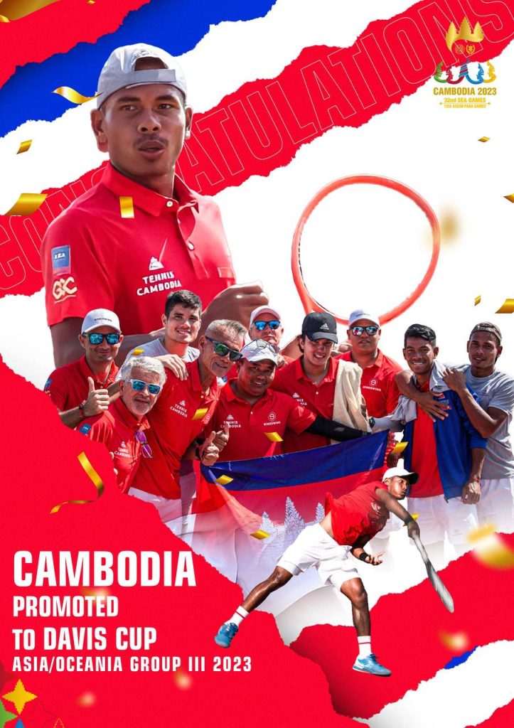 ក្រុមកីឡាវាយកូនបាល់ជម្រើសជាតិកម្ពុជា 🇰🇭 ឡើង Group III នៃ ព្រឹត្តិ ការណ៍ Davis Cup Asia/Oceania 2023 បន្ទាប់ ពី ប្រកួត ឈ្នះ ក្រុម ជម្រើសជាតិសិង្ហបុរី 🇸🇬 ដោយលទ្ធផល ២-១ ក្នុងការប្រកួតវគ្គផ្ដាច់ព្រ័ត្រក្រុមទី៤ មុននេះបន្ដិច នៅទីក្រុង Isa Town ប្រទេសបារ៉ែន ។ ចាន់ វិចិត្រ