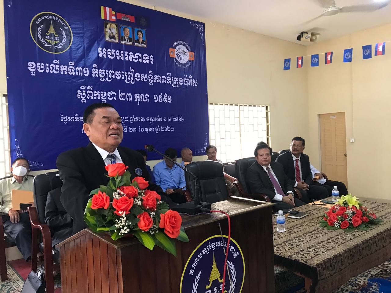 លោកបន្តថា គណបក្សខ្មែរួបរួមជាតិ និងគណបក្សកម្ពុជានិយម សូមចូលរួមអបអរសាទរយ៉ាងក្លៀវក្លា និងរំឭកអំពីកិច្ចព្រមព្រៀងសន្តិភាពទីក្រុងប៉ារីស៍ ស្តីពីកម្ពុជា ២៣តុលា ៩១។ សន្ធិសញ្ញាសន្តិភាពនេះ គឺក្នុង ក្របខណ្ឌនៃដំណោះស្រាយជាប្រវត្តិសាស្ត្រមួយ ក្នុងការបញ្ចប់សង្គ្រាម ហើយបើកឱ្យមានការពាក់ព័ន្ធផ្ទាល់ពីអង្គការសហប្រជាជាតិ ដូចជាការបង្កើតអាជ្ញាធរបណ្តោះអាសន្ន នៃអង្គការសហប្រជាជាតិ ដែលគេស្គាល់ថា អ៊ុនតាក់។ យើងអាចកត់សម្គាល់បានថា មានការតម្រូវឱ្យដកកងទ័ពបរទេសចេញពីកម្ពុជា មានការរៀបចំមាតុភូមិនិវត្តដោយសុវត្ថិភាពរបស់ជនភៀសខ្លួនខ្មែរ មានការរៀបចំការបោះឆ្នោតសកលសេរី និងយុត្តិធម៌នៅ ឆ្នាំ១៩៩៣ មានការស្តារ និងធ្វើនីតិសម្បទាហេដ្ឋារចនាសម្ព័ន្ធ ការរៀបចំអភិវឌ្ឍ ក្រោមជំនួយឧបត្ថម្ភពីសហគមន៍អន្តរជាតិ។ល។ ជាពិសេសធានានូវការផ្សះផ្សាជាតិ ឯកភាពជាតិ ឯករាជ្យជាតិ អធិបតេយ្យភាព បូរណភាពទឹកដី ការគោរពសិទ្ធិមនុស្ស និងលទ្ធិប្រជាធិបតេយ្យសេរីពហុបក្ស។ កិច្ចព្រមព្រៀងសន្តិភាពជា ប្រវត្តិសាស្ត្រនេះ ខ្មែរគ្រប់ភាគីបានព្រមព្រៀងគ្នា ដោយមានការឧបត្ថម្ភគាំទ្រពីសហគមន៍អន្តរជាតិ និងអង្គ ការសហប្រជាជាតិផង បានឈានចូលគម្រប់ខួបឆ្នាំទី៣១ហើយ។