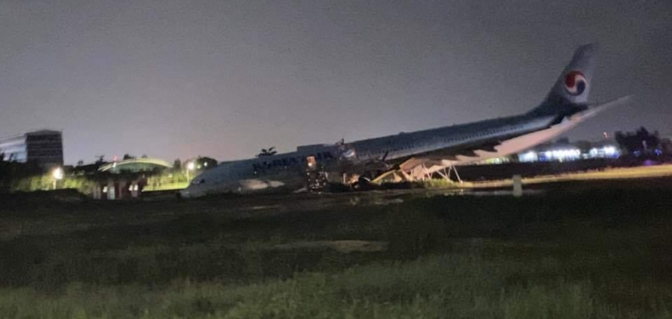 យន្តហោះក្រុមហ៊ុនអាកាសចរណ៍កូរ៉េខាងត្បូងបានរអិល ចេញពីផ្លូវពេលចុះចតនៅហ្វីលីពីន ខណៈកំពុងភ្លៀងធ្លាក់ខ្លាំង