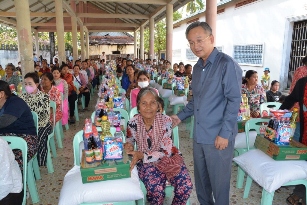 អំណោយចែកជូនប្រជាពលរដ្ឋនៅពេលនេះក្នុង១គ្រួសារទទួលបាន ៖ អង្ករ ២៥គីឡូក្រាម,មី ១កេស , ប្រេងឆា១ដប ទឹកស៊ីអ៊ីវ១យួរ៕ ប៊ុនធី-សណ្តោស
