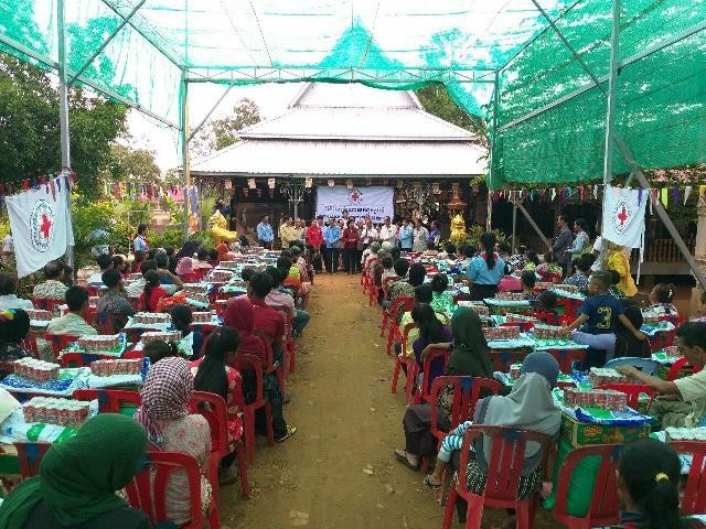 ក្រចេះ៖ នៅព្រឹកថ្ងៃទី១៣ ខែកញ្ញា ឆ្នាំ២០១៩នេះ កាកបាទក្រហមកម្ពុជា ដែលមានសម្តេចកិត្តិព្រឹទ្ធបណ្ឌិត ប៊ុន រ៉ានី ហ៊ុនសែន ជាប្រធានបានចាត់ឱ្យក្រុមការងារស្នាក់ការកណ្តាលកាកបាទក្រហមកម្ពុជា នាំយកអំណោយមនុស្សធម៌ចែកជូនប្រជាពលរដ្ឋរងគ្រោះដោយទឹកជំនន់ចំនួន៣៥៩គ្រួសារ ក្នុងស្រុកចំនួន២ គឺទួលសុវត្ថិភាពឃុំព្រែកសាម៉ាន់ ស្រុកឆ្លួងចំនួន១៨៤គ្រួសារ និងទួលសុវត្ថិភាព នៅឃុំថ្មគ្រែស្រុកចិត្របុរី ចំនួន១៧៥គ្រួសារផងដែរ។ ពិធីនេះមានការអញ្ជើញចូលរួមពីសំណាក់ឯកឧត្តមវេជ្ជបណ្ឌិត អ៊ុយ សំអាត នាយកនាយកដ្ឋានគ្រប់គ្រងគ្រោះមហន្តរាយកាកបាទក្រហមកម្ពុជា ឯកឧត្តម វ៉ា ថន ប្រធានកិត្តិយសសាខា និងឯកឧត្តម ធុន គ្រី ប្រធានគណៈកម្មាធិការសាខាផងដែរ។