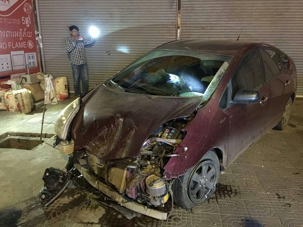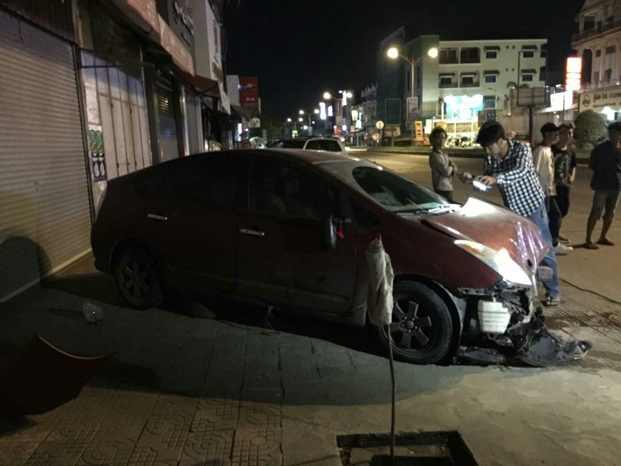 រថយន្ត PRIUS បើកលឿនដូចហោះ បានរេចង្កូតបុកបង្គោលភ្លើងបាក់១ដើម