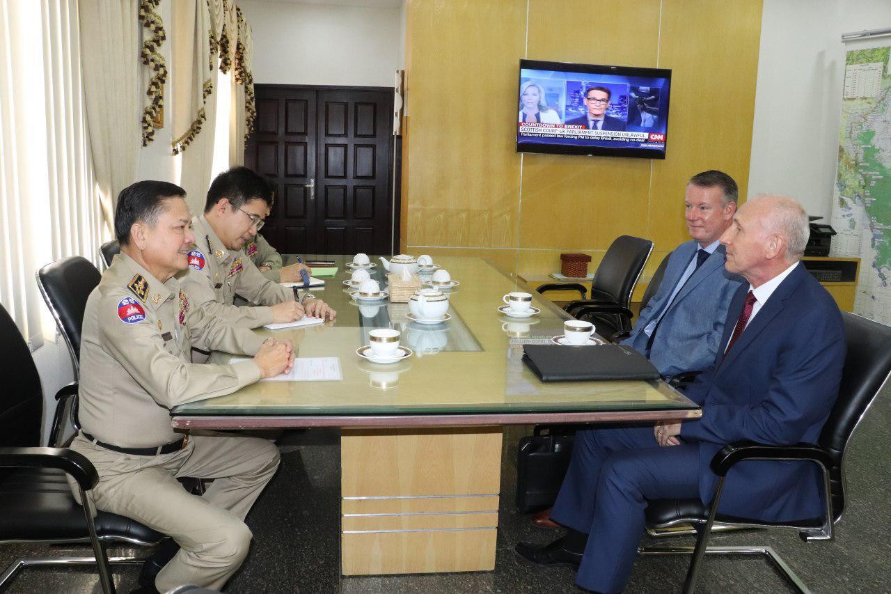 អគ្គស្នងការនគរបាលជាតិនាយឧត្តមសេនីយ៍សន្តិបណ្ឌិតនេត សាវឿន បានទទួលជួប តំណាងទីភ្នាក់ងារ ឧក្រិដ្ឋកម្មជាតិ NCA National Crime Agency នៃចក្រភពអង់គ្លេស ដែលបានផ្លាស់ប្តូរប្រធានថ្មី។ ទីភ្នាក់ងារ ឧក្រិដ្ឋកម្មជាតិ NCA នៃចក្រភពអង់គ្លេស គឺជាទីភ្នាក់ងារមួយដែលបានចុះអនុស្សារណៈ MOU ជាមួយនឹង អគ្គស្នងការដ្ឋាននគរជាតិកម្ពុជាក្នុងការប្រឆាំងឧក្រិដ្ឋកម្មឆ្លងដែន។ លោក Gerry McGowan ដែលជាប្រធាន ចាស់ចប់អាណ្ណត្តិទទួលបន្ទុកកម្ពុជា វៀតណាម ឡាវ និងម៉ាឡេស៊ី នឹងត្រូវជំនួសដោយប្រធានថ្មីលោក Peter Vernon ។ នាយឧត្តមសេនីយ៍ សន្តិបណ្ឌិត នេត សាវឿន បានមានប្រសាសន៍ថា ឆ្លងតាមការធ្វើកិច្ចសហការ កន្លងមករវាងស្ថាប័ន NCA និងអគ្គស្នងការដ្ឋាននគរបាលជាតិ ភាគីទាំងបានផ្លាស់ប្តូរកិច្ចសហប្រតិបត្តការ បានយ៉ាងល្អប្រសើរ ក្នុងការប្រឆាំង និងទប់ស្កាត់បទល្មើសឆ្លងដែនគ្រប់ប្រភេទ ជាពិសេសកិច្ចសហប្រតិបត្តិការ ប្រឆាំងការជូញដូរកុមារ និងអនីតិជន។ ជាក់ស្តែងនៅពេលថ្មីៗនេះ កម្លាំងនាយកដ្ឋានប្រឆាំងការជួញដូរមនុស្ស និងការពារអនីតិជន របស់អគ្គស្នងការដ្ឋាននគរបាលជាតិ បានធ្វើការចាប់ខ្លួនក៏ដូចជាបង្ក្រាបនូវជនល្មើស រំលោភផ្លូវភេទលើកុមារតាមសំណើររបស់ NCA ផងដែរ។