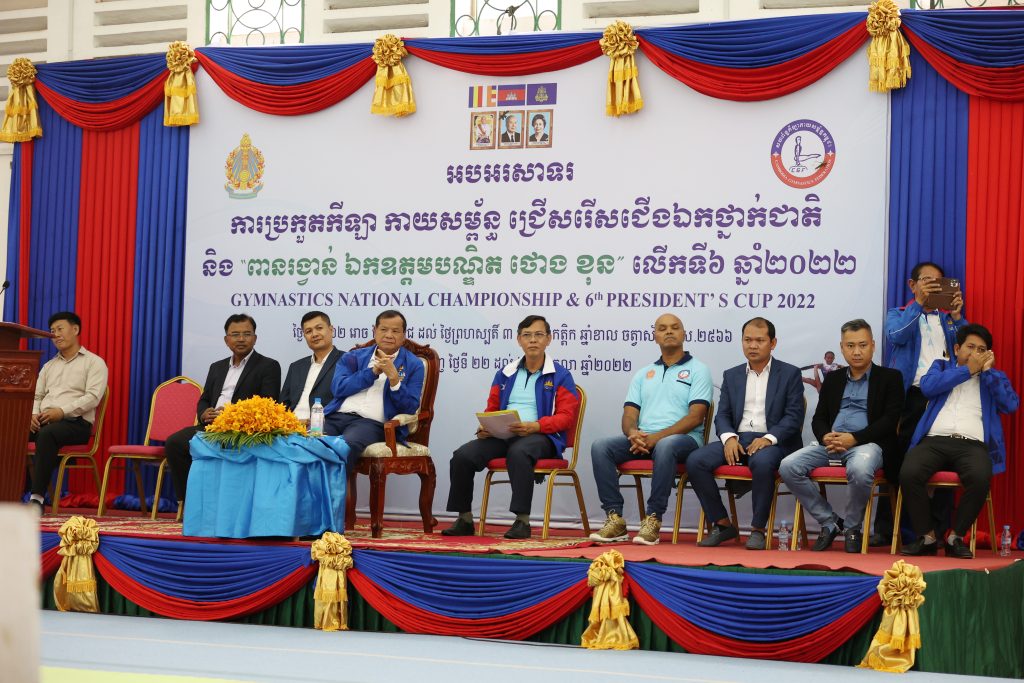 ឯកឧត្តមប្រធាន បញ្ជាក់ថា ក្នុងនាមសហព័ន្ធកីឡាកាយសម្ព័ន្ធកម្ពុជា និងខ្លួនខ្ញុំផ្ទាល់ ខ្ញុំសូមថ្លែងអំណរគុណយ៉ាងជ្រាលជ្រៅ ចំពោះ ប្រតិភូ គ្រូបង្វឹក កីឡាករ កីឡាការិនី ដែលបានចូលរួមក្នុងការប្រកួតកីឡាកាយសម្ព័ន្ធជ្រើសរើសជើងឯកថ្នាក់ជាតិ ប្រចាំឆ្នាំ២០២២នេះ ដោយគោរពបានតាមការណែនាំរបស់ក្រសួងអប់រំ យុវជន និងកីឡា និងអនុវត្តតាមបទបញ្ជ បច្ចេកទេសក្រុមសីលធម៌កីឡា និងស្មារតី Fair Play ក្នុងការប្រកួតនាំឱ្យការប្រកួតនេះប្រព្រឹត្តទៅដោយរលូន។ ជាពិសេសនៅក្នុងឆ្នាំ២០២២នេះ សហព័ន្ធកីឡាកាយសម្ព័ន្ធកម្ពុជា បានធ្វើឱ្យមានការចាប់អារម្មណ៍ទាំងក្នុងប្រទេស ក្នុងតំបន់ និងក្រៅតំបន់ ដោយយើងបានអនុវត្តតាមផែនការមេ ឆ្ពោះទៅកាន់ឆ្នាំ២០២៣ ដែលជាព្រឹត្តិការណ៍ ប្រវត្តិសាស្ត្រកម្ពុជាពុំធ្លាប់មាន។ ថ្មីៗកន្លងមកនេះយើងបាទទួលមេដាយពីកីឡាស៊ីហ្គេមលើកទី៣១ ខែឧសភា ឆ្នាំ២០២២ នៅប្រទេសវៀតណាម មេដាយប្រាក់ចំនួន០៣គ្រឿង និងមេដាយសំរឹទ្ធ០១គ្រឿង ព្រមទាំងមេដាយជើងឯកអាស៊ីលើកទី៧ ខែកញ្ញា ឆ្នាំ២០២២ នៅប្រទេសថៃ ដោយទទួលបានមេដាយប្រាក់០២គ្រឿង និងសំរឹទ្ធ០១ គ្រឿងបន្ថែមទៀត។