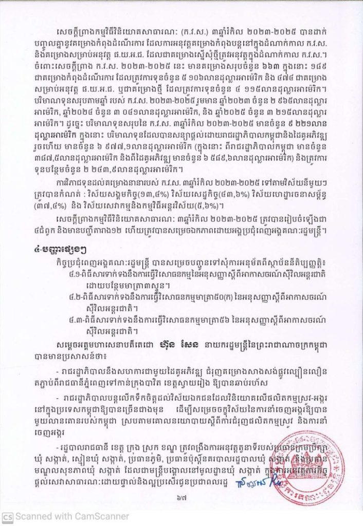 នៅក្នុងឱកាសនេះដែរ សម្តេចតេជោនាយករដ្ឋមន្ត្រី ក៏បានកោតសរសើរ និងថ្លែងអំណរគុណយ៉ាងជ្រាលជ្រៅមជូនដល់កងកម្លាំងប្រដាប់អាវុធគ្រប់ប្រភេទដែលបានរក្សាសន្តិសុខ សុវត្ថិភាព សណ្តាប់ធ្នាប់សាធារណៈ និងការពារបូរណភាពទឹកដីនៃព្រះរាជាណាចក្រកម្ពុជា ៕ ស៊ូ វណ្ណលុក